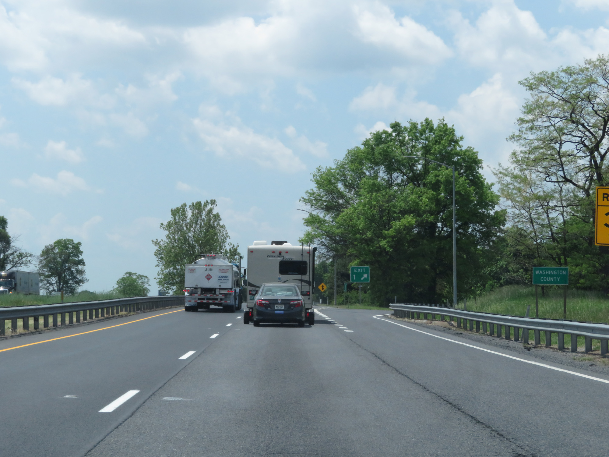 Interstate 81 South as it crosses into Maryland from Pennsylvania, entering Washington County. I-81 remains in Washington County for its entire 12-mile duration in Maryland. (Photo taken 5/19/17). |