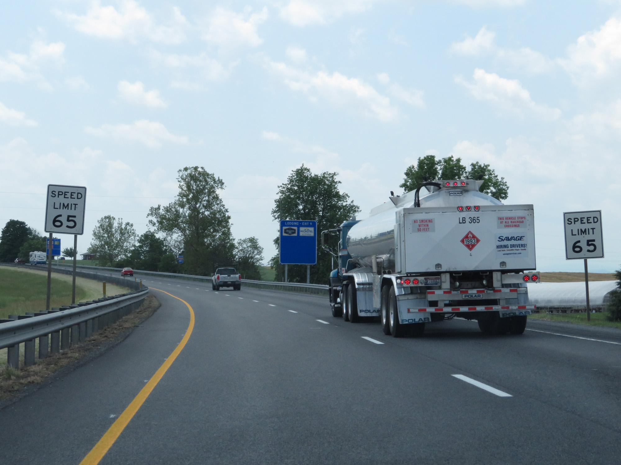 The speed limit on Interstate 81 South in Maryland starts out at 65 mph. (Photo taken 5/19/17). |