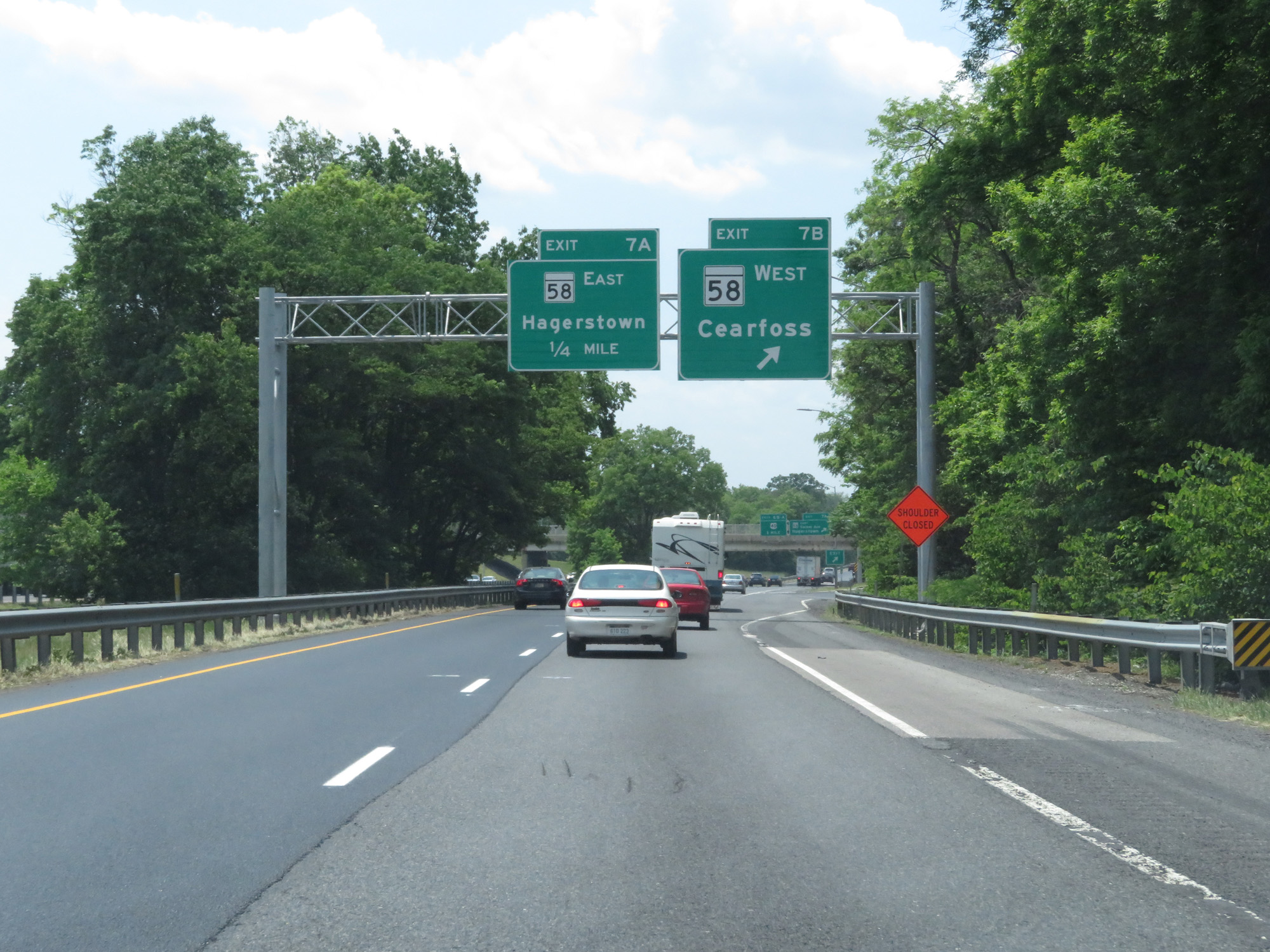 Interstate 81 South at Exit 7B: MD 58 West - Cearfoss (Photo taken 5/19/17). |