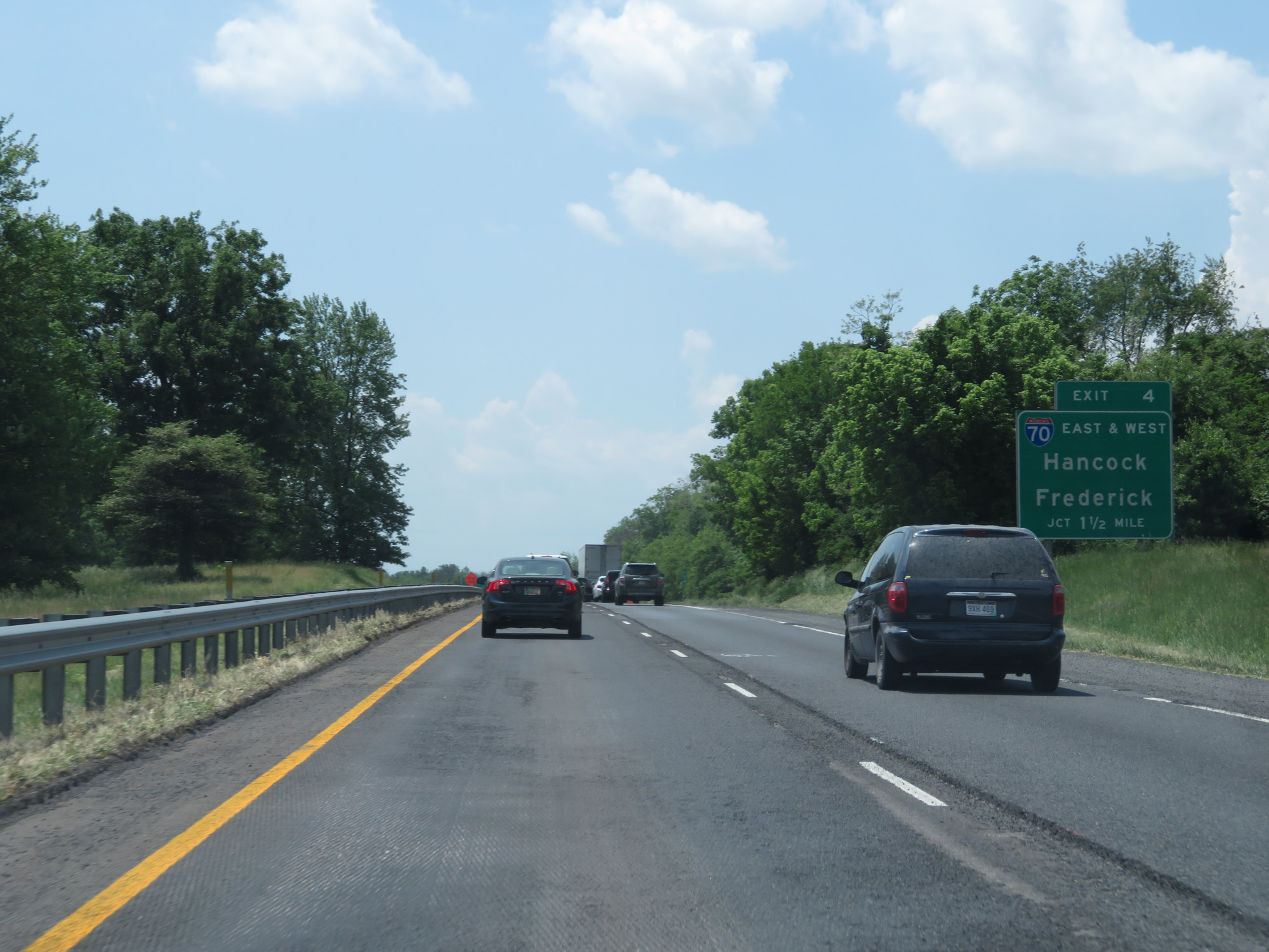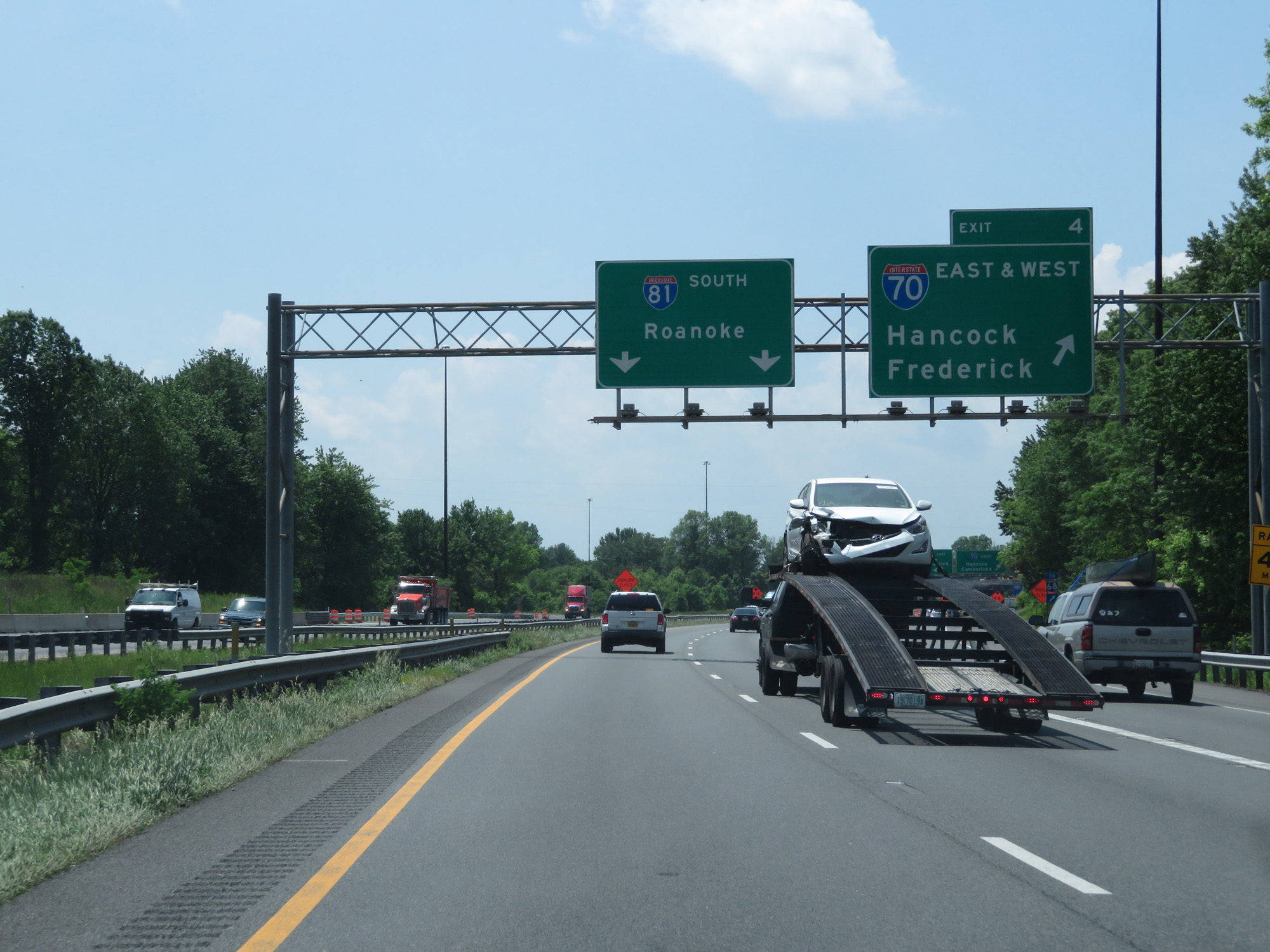 Interstate 81 South at Exit 4: Interstate 70 - Hancock / Frederick (Photo taken 5/19/17). |