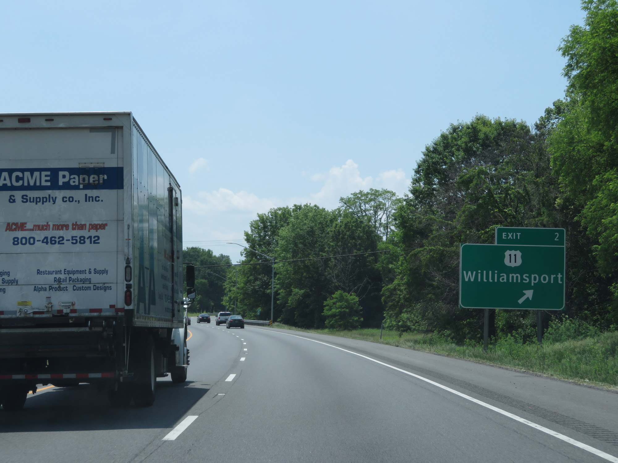 Interstate 81 South at Exit 2: US 11 - Williamsport (Photo taken 5/19/17). |