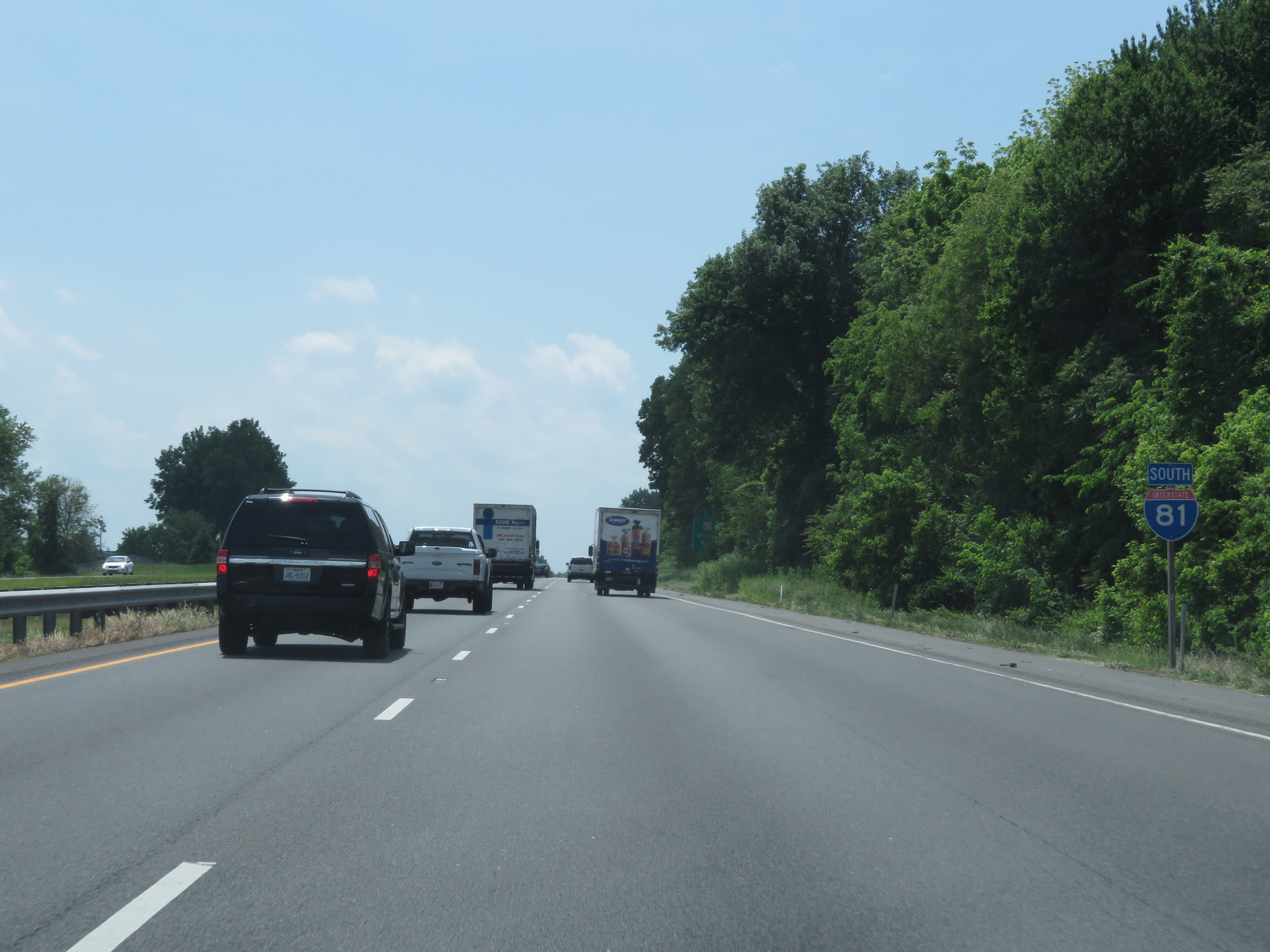 Interstate 81 South approaching Exit 4 - 1 1/2 miles. (Photo taken 5/19/17). |