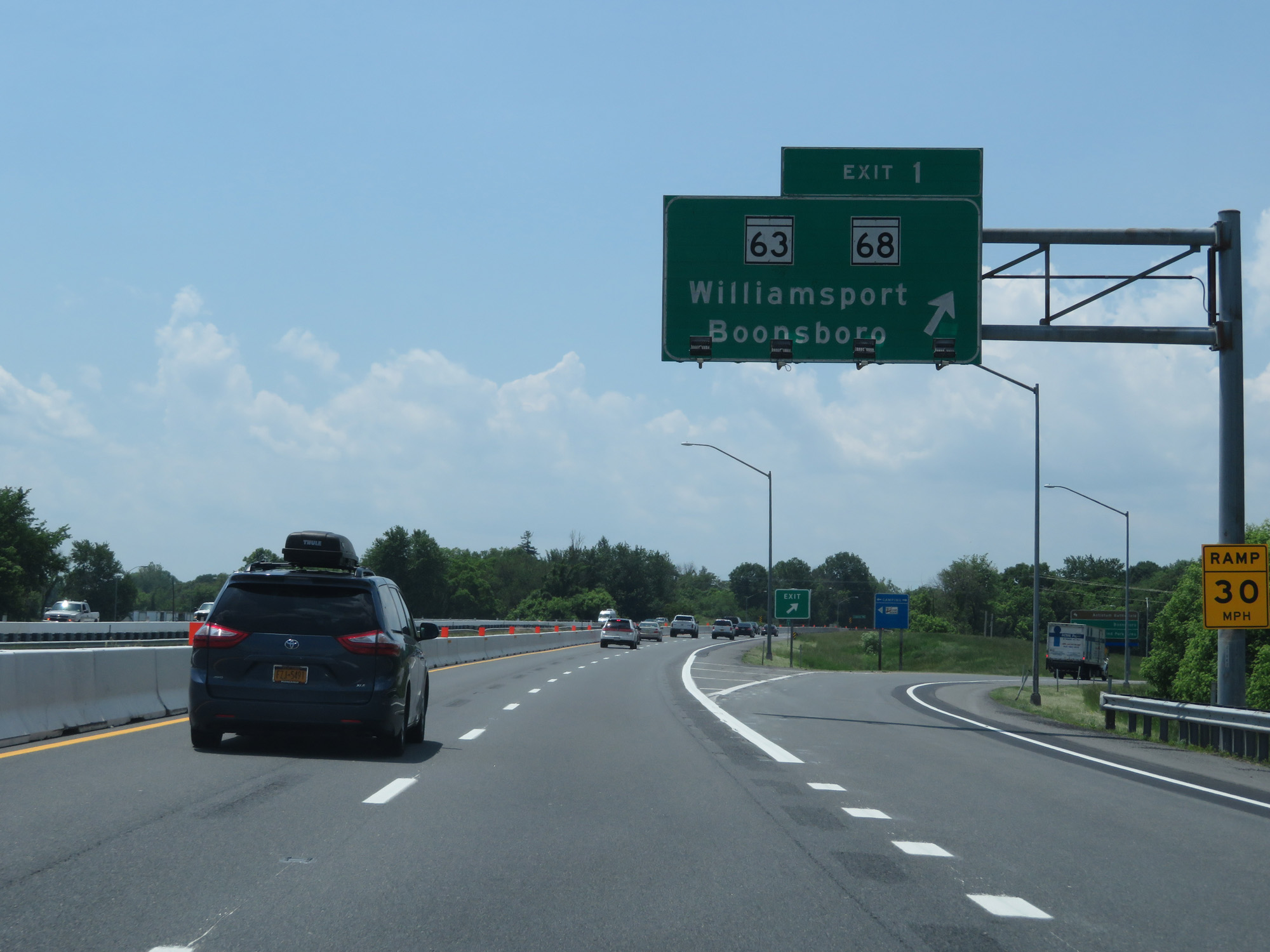 Interstate 81 South at Exit 1: MD 63 / MD 68 - Williamsport / Boonsboro (Photo taken 5/19/17). |