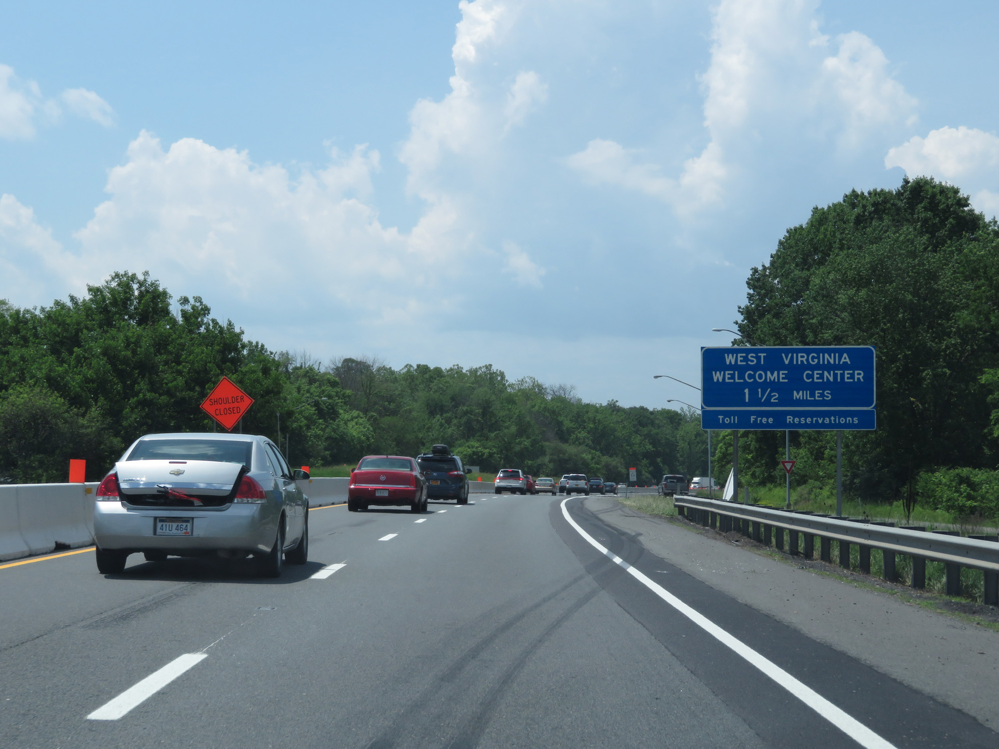 The West Virginia Welcome Center lies 1 1/2 miles ahead. (Photo taken 5/19/17). |