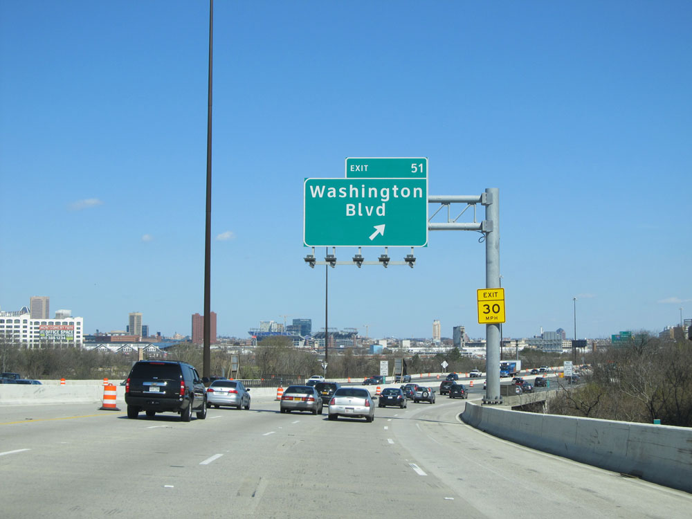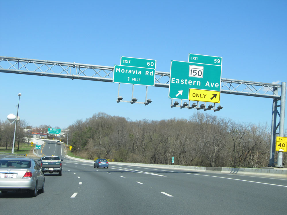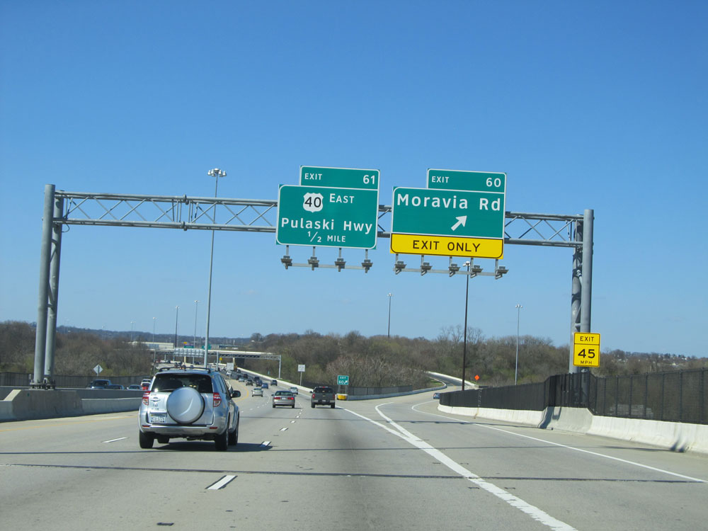 Interstate 95 North at Exit 60: Moravia Rd (Photo taken 4/11/15).