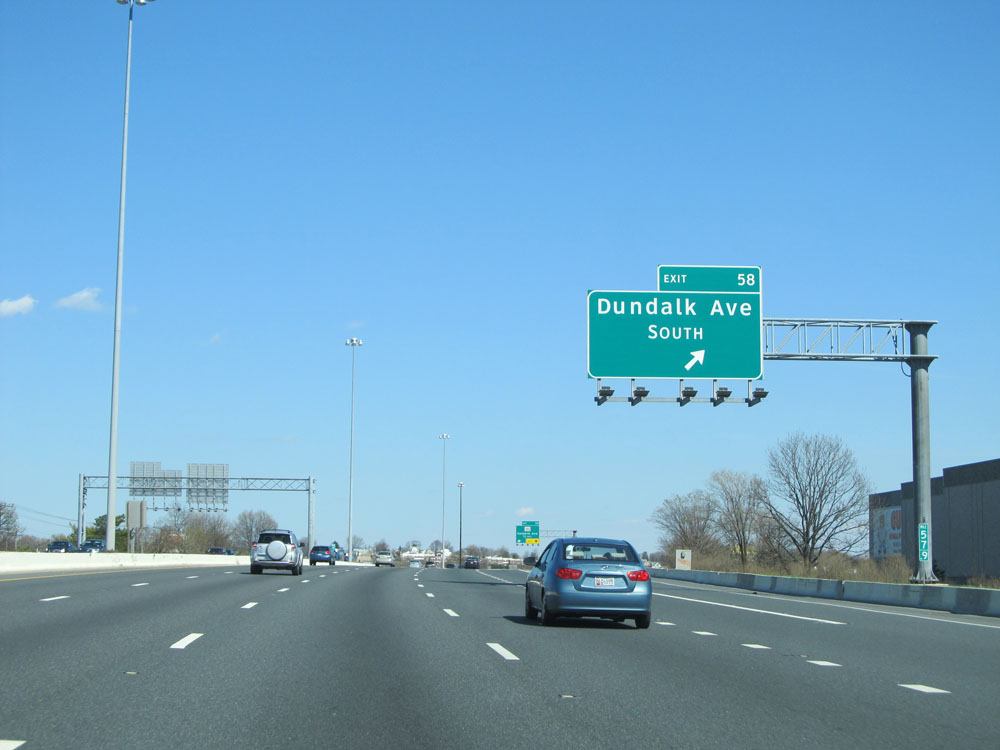 Interstate 95 North at Exit 58: Dundalk Ave South (Photo taken 4/11/15).