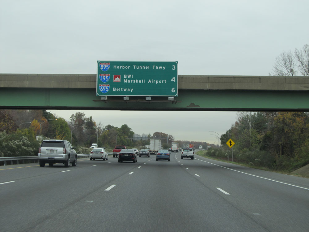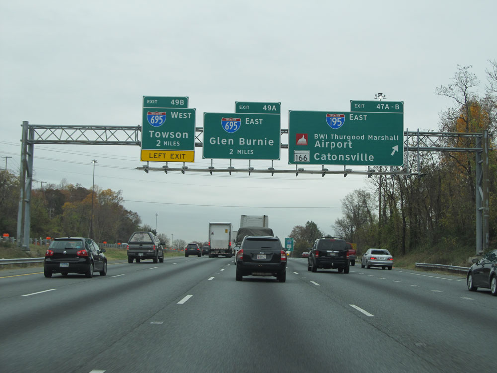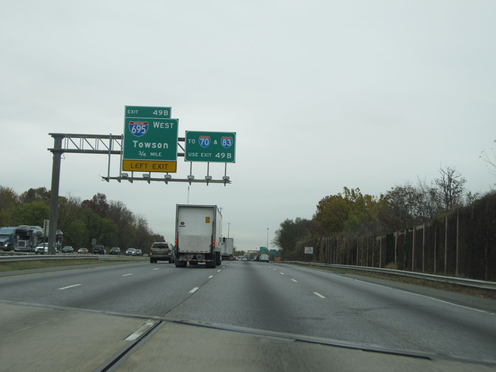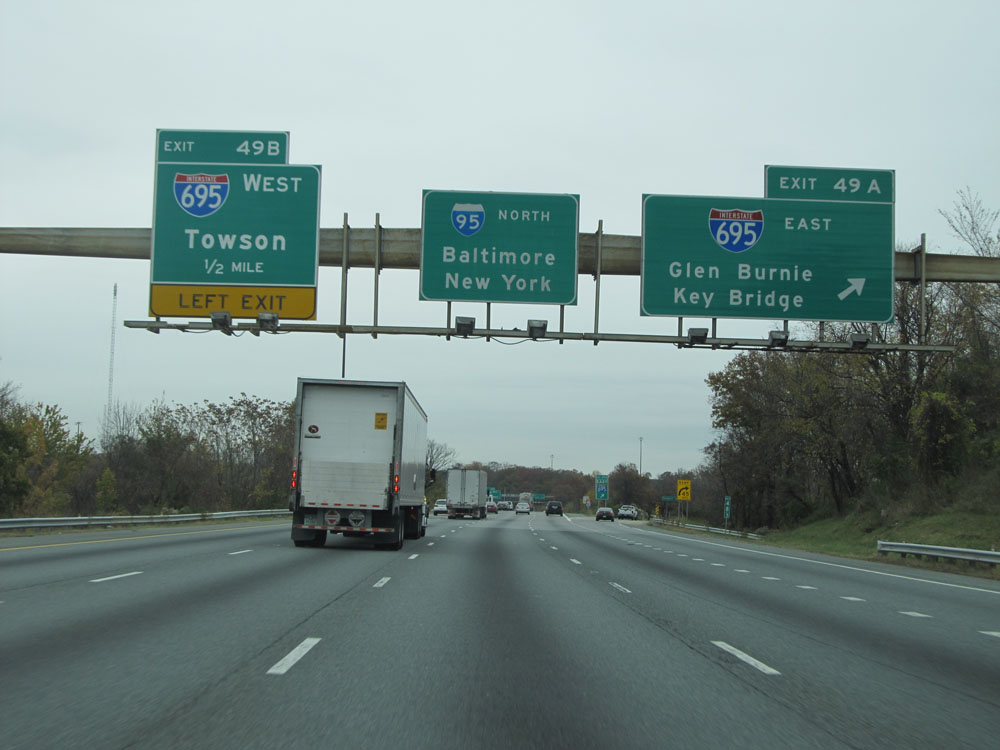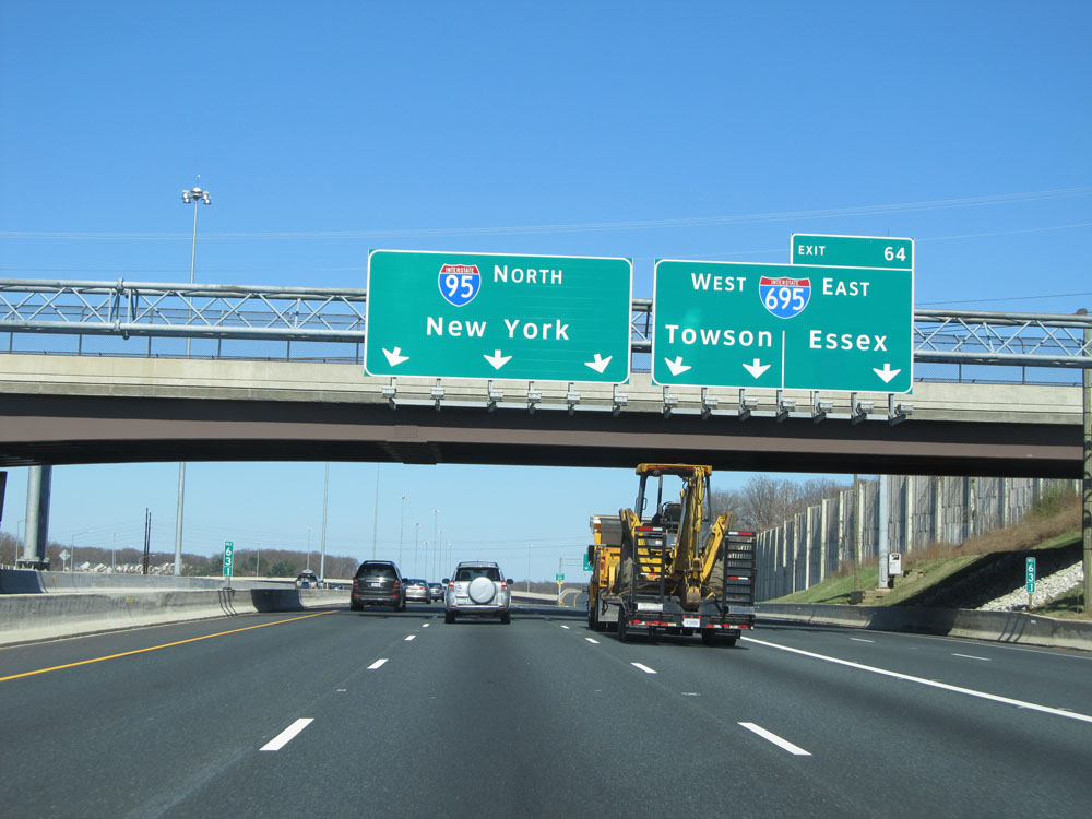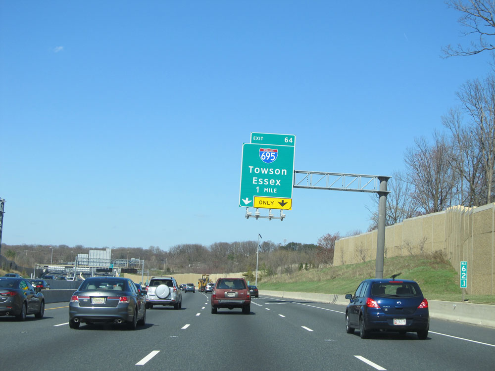 Interstate 95 North at Exit 64: Interstate 695 - Towson / Essex (Photo taken 4/11/15).