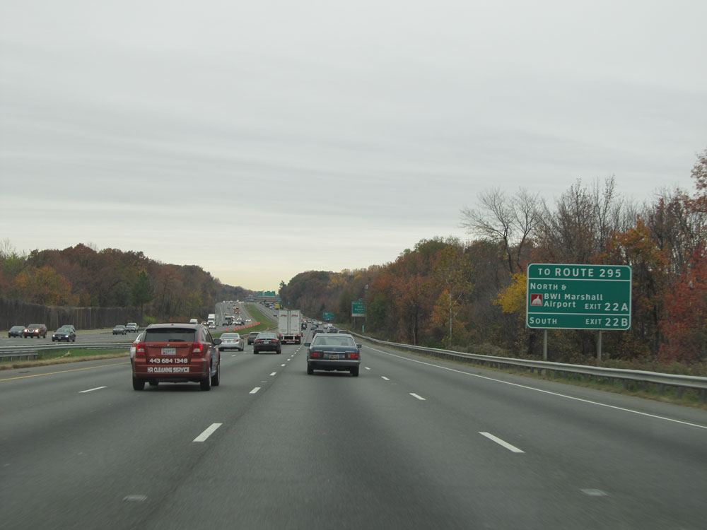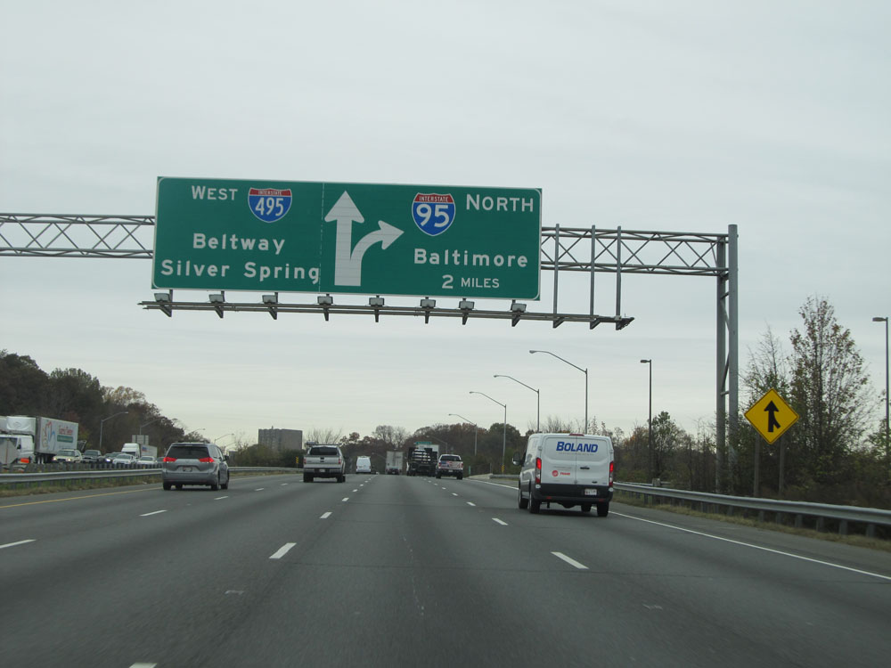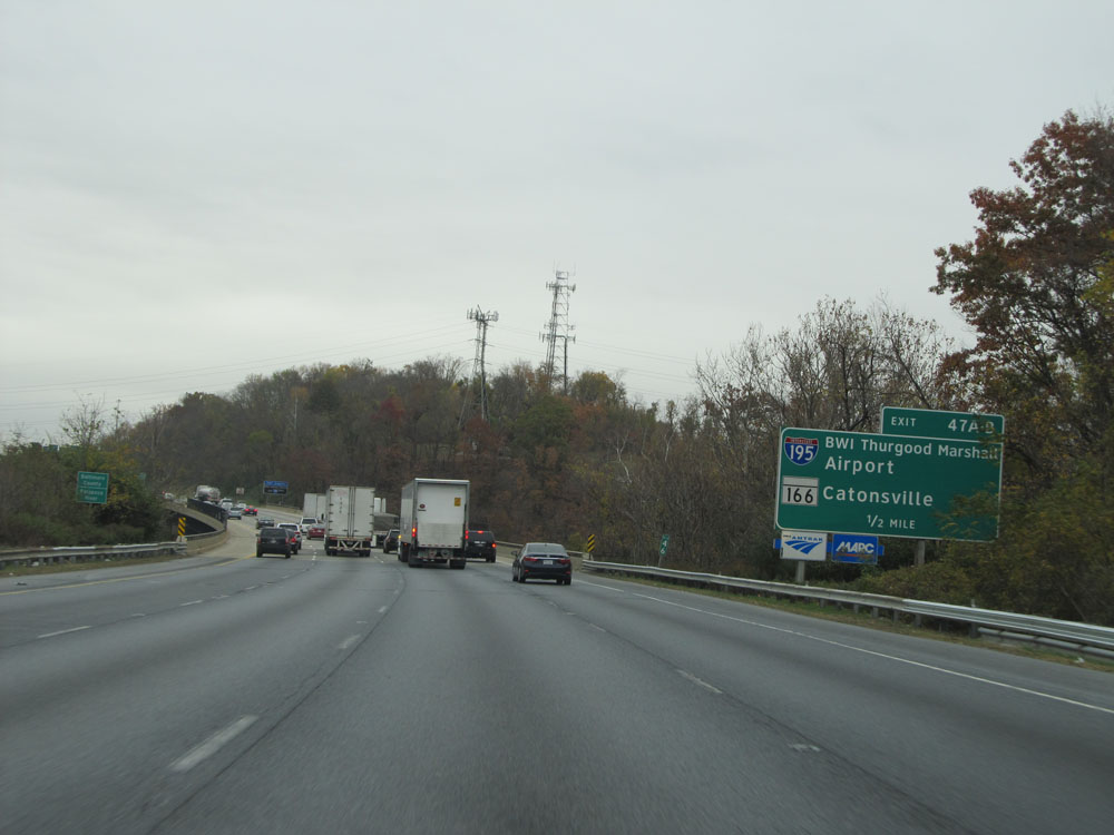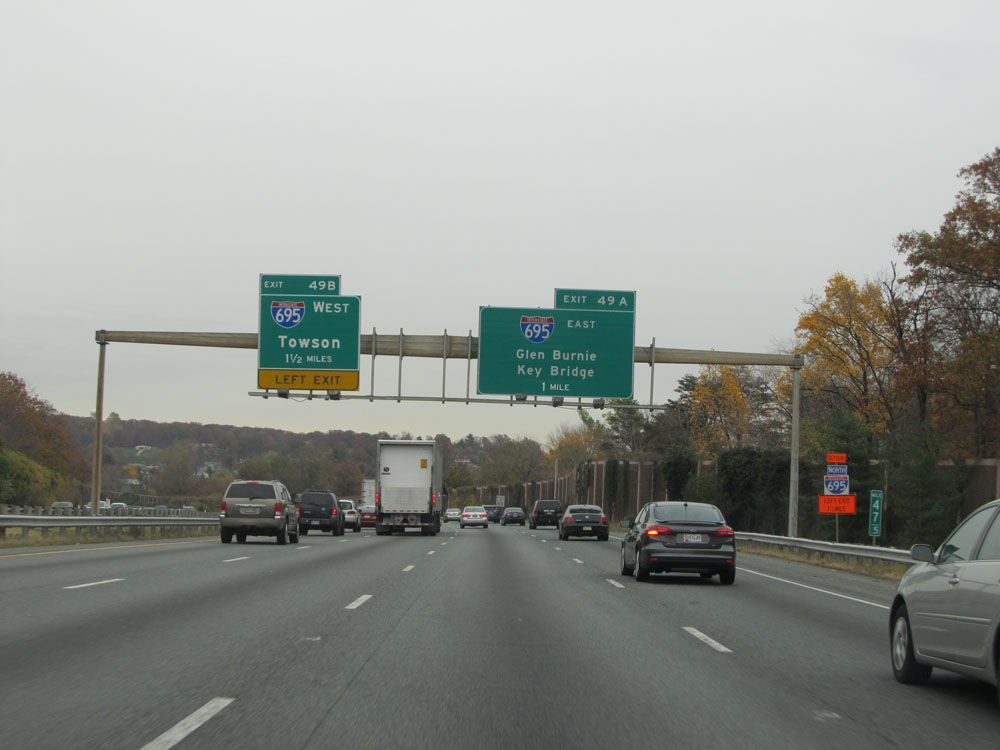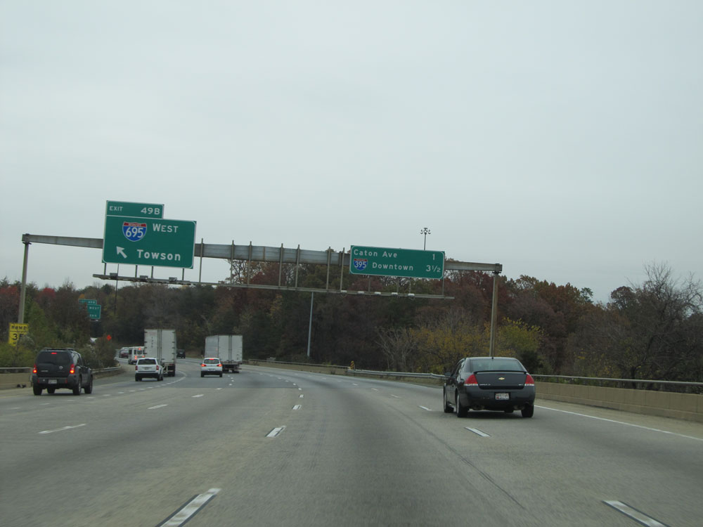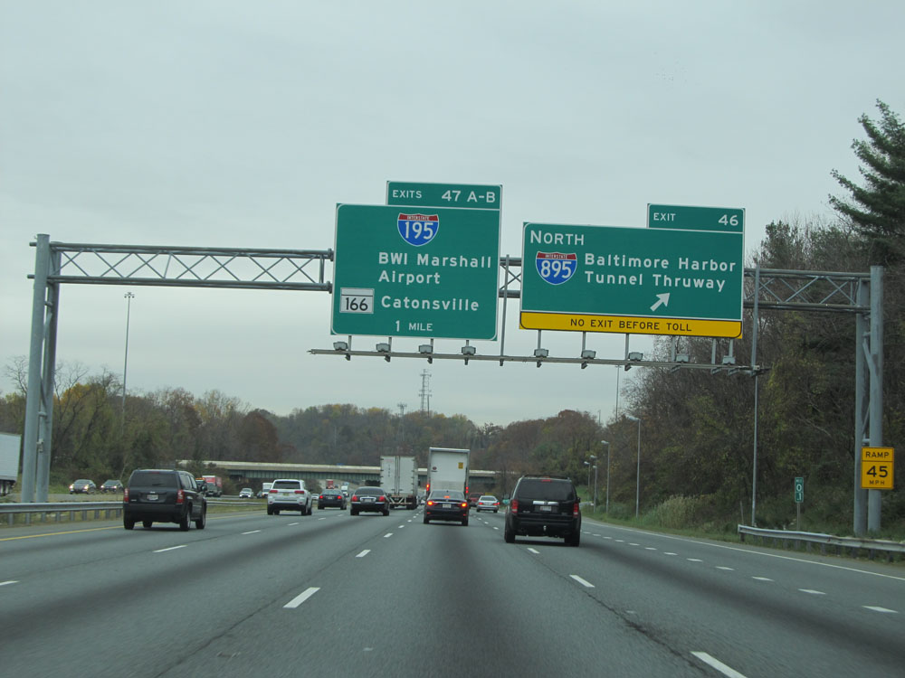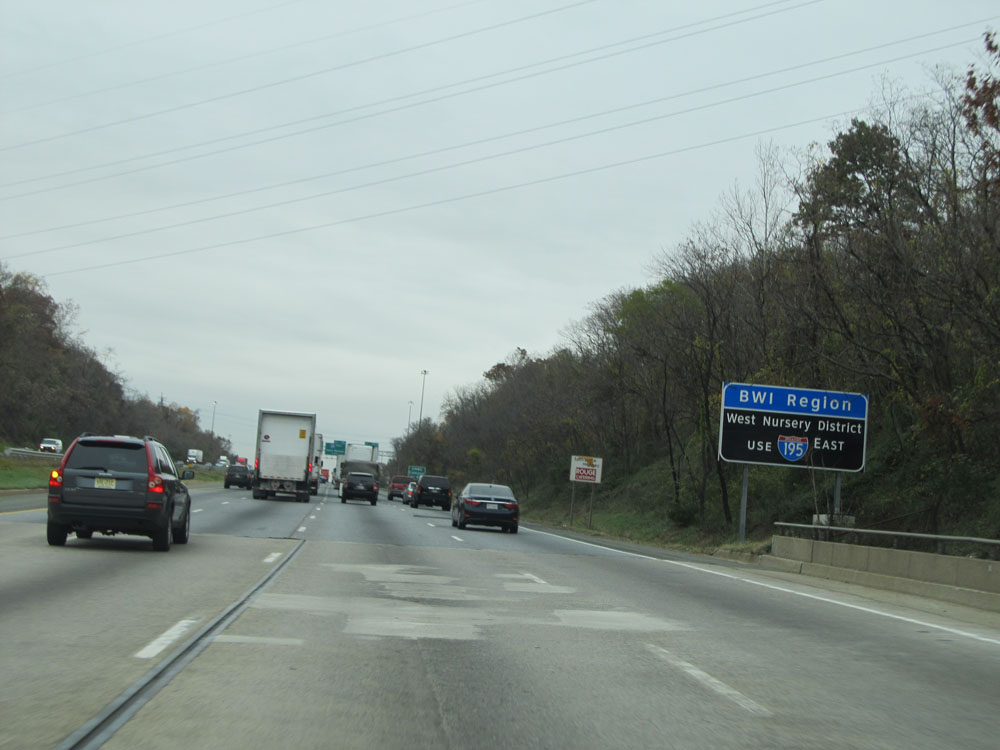 Interstate 95 North at Exit 64: Interstate 695 - Towson / Essex (Photo taken 4/11/15).