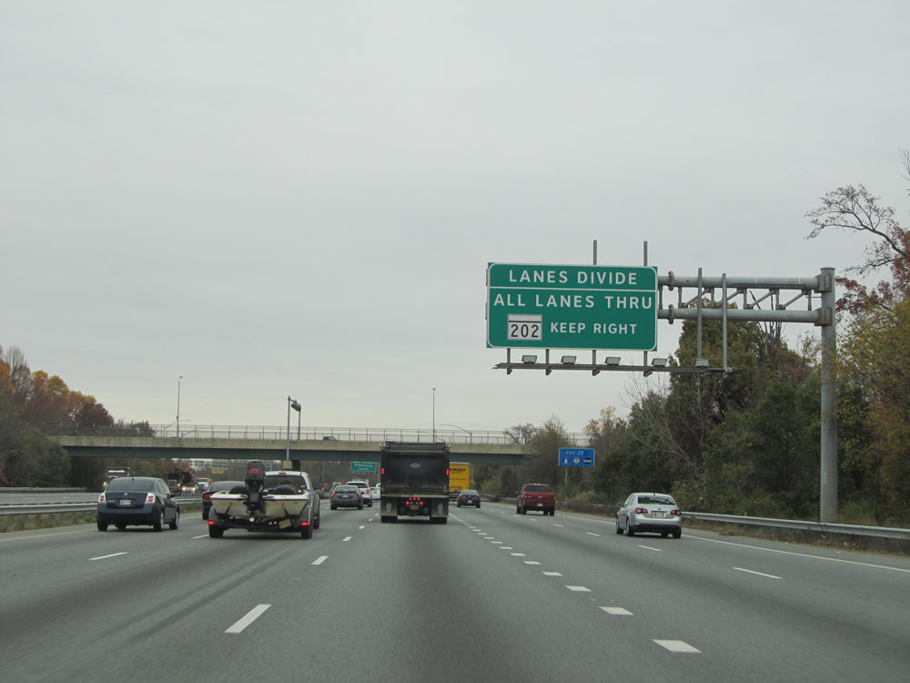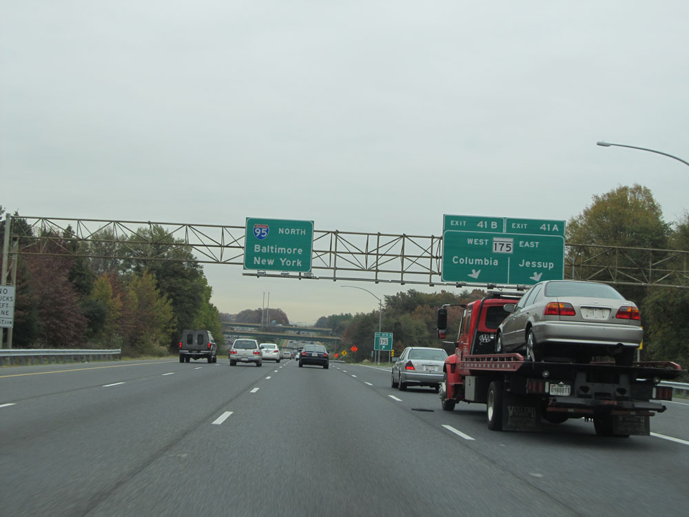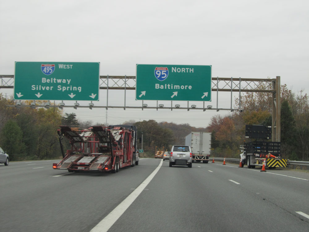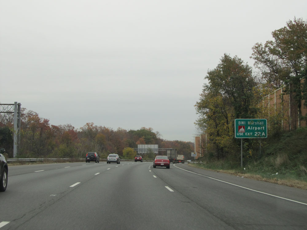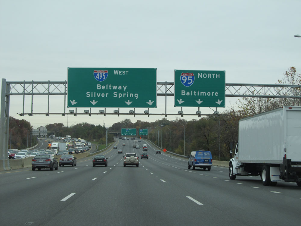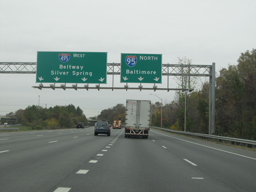 Interstate 95 North at Exit 64: Interstate 695 - Towson / Essex (Photo taken 4/11/15).