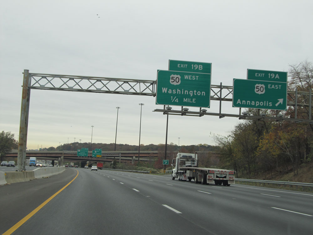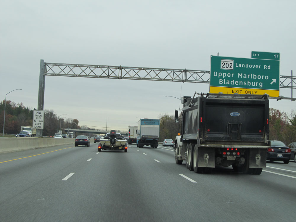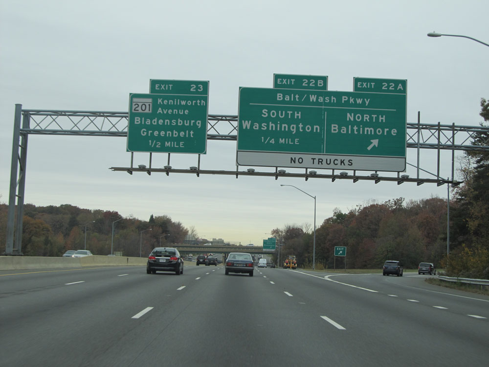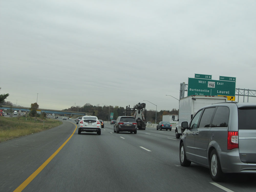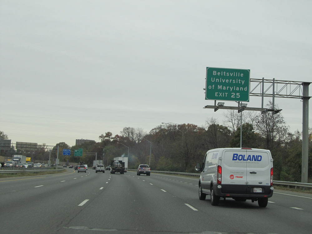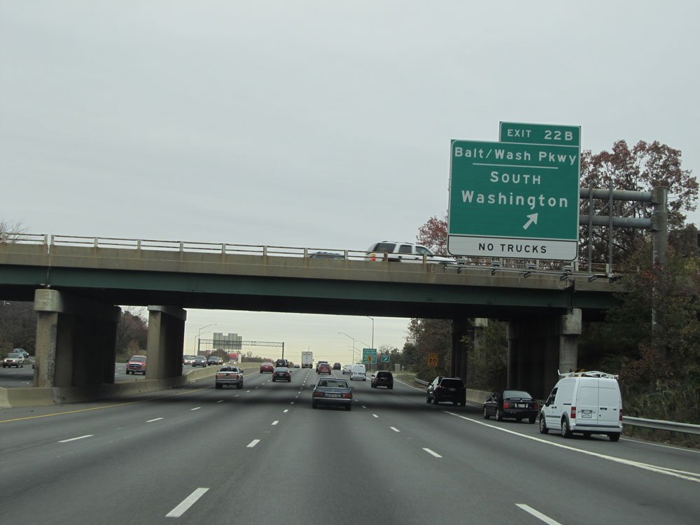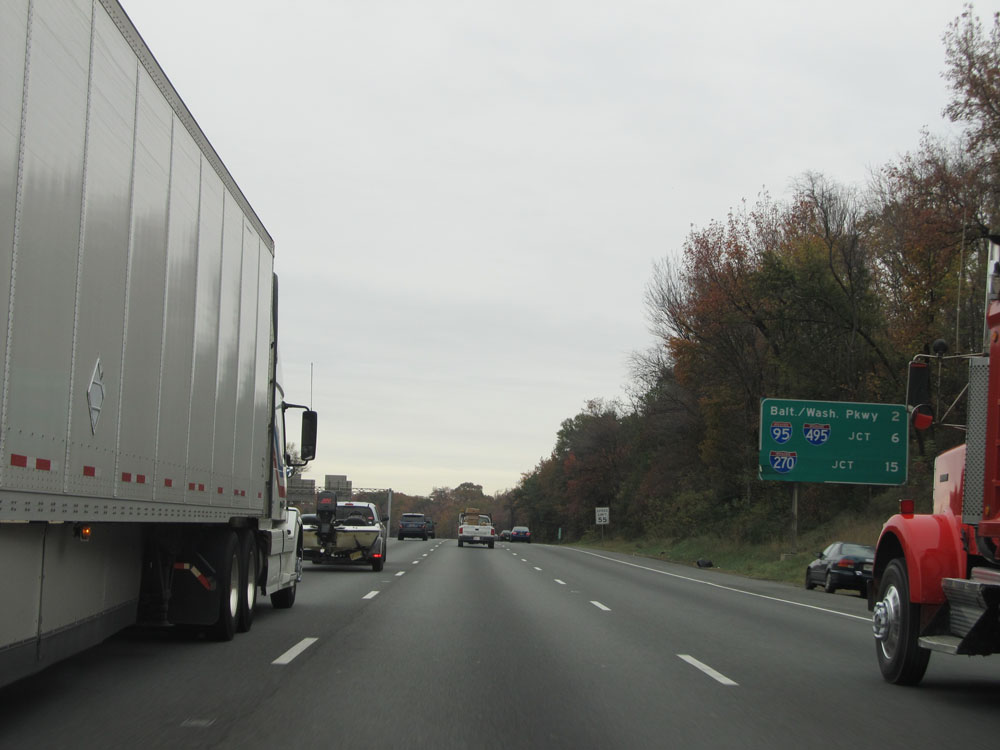 Interstate 95 North at Exit 64: Interstate 695 - Towson / Essex (Photo taken 4/11/15).