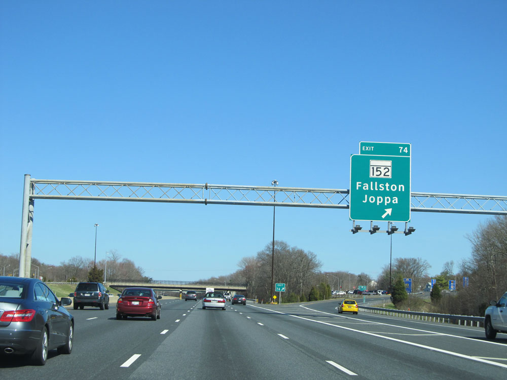Interstate 95 North at Exit 74: MD 152 - Fallston / Joppa (Photo taken 4/11/15).
