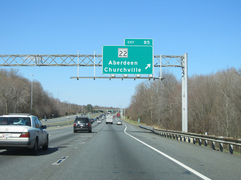 Interstate 95 North at Exit 85: MD 22 - Aberdeen / Churchville (Photo taken 4/11/15).