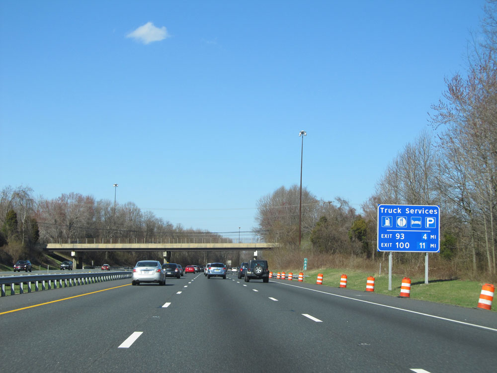 Truck services exist at Exits 93 and 100 ahead. (Photo taken 4/11/15).