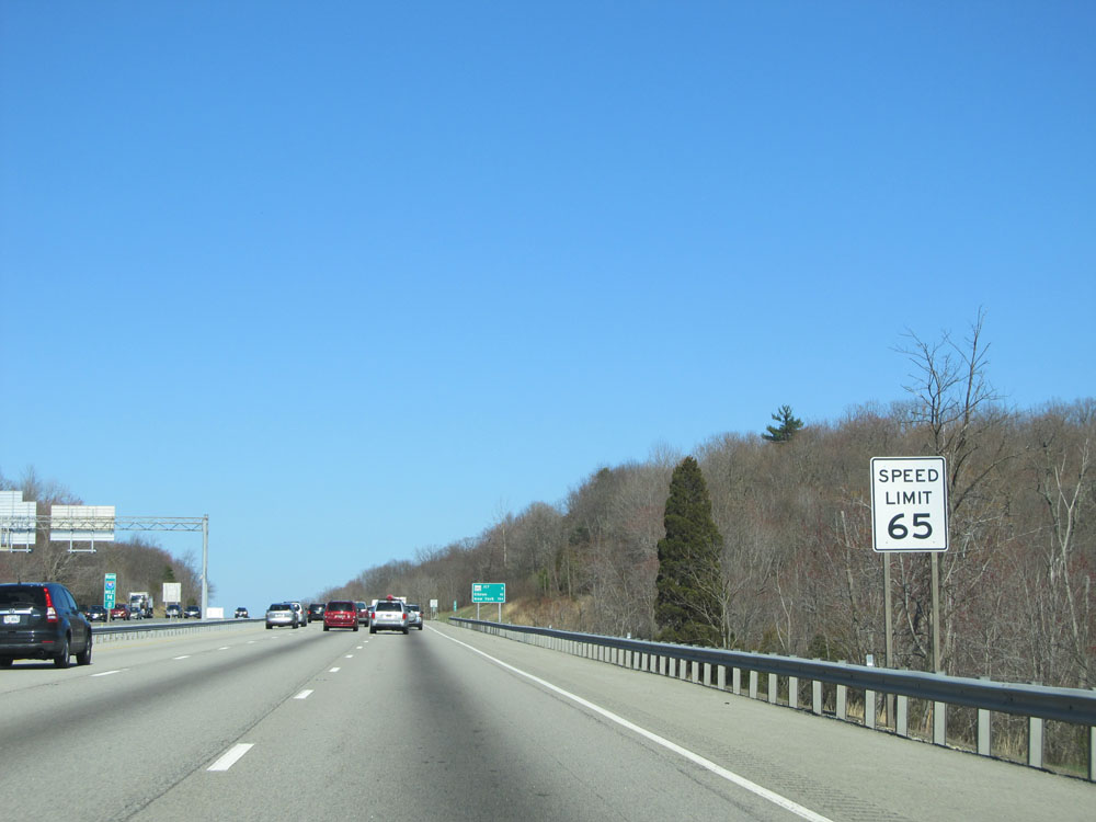 Near mile marker 64, the speed limit increases to 65 mph for all lanes. (Photo taken 4/11/15).
