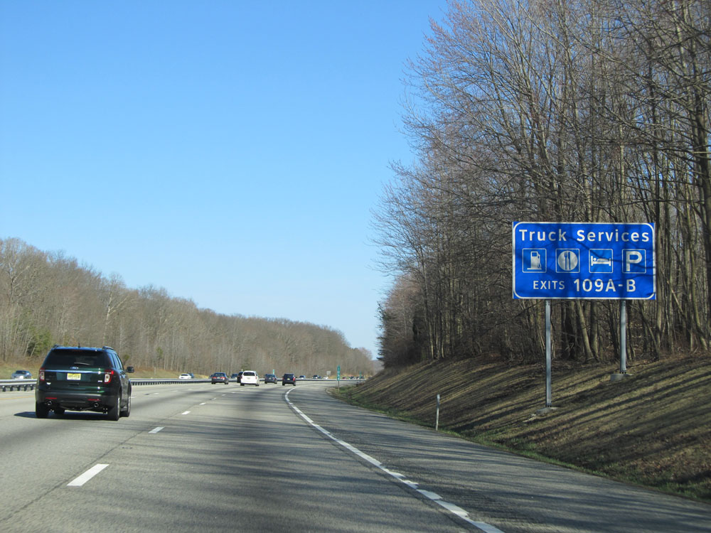 There are truck services off Exits 109A-B. (Photo taken 4/11/15).