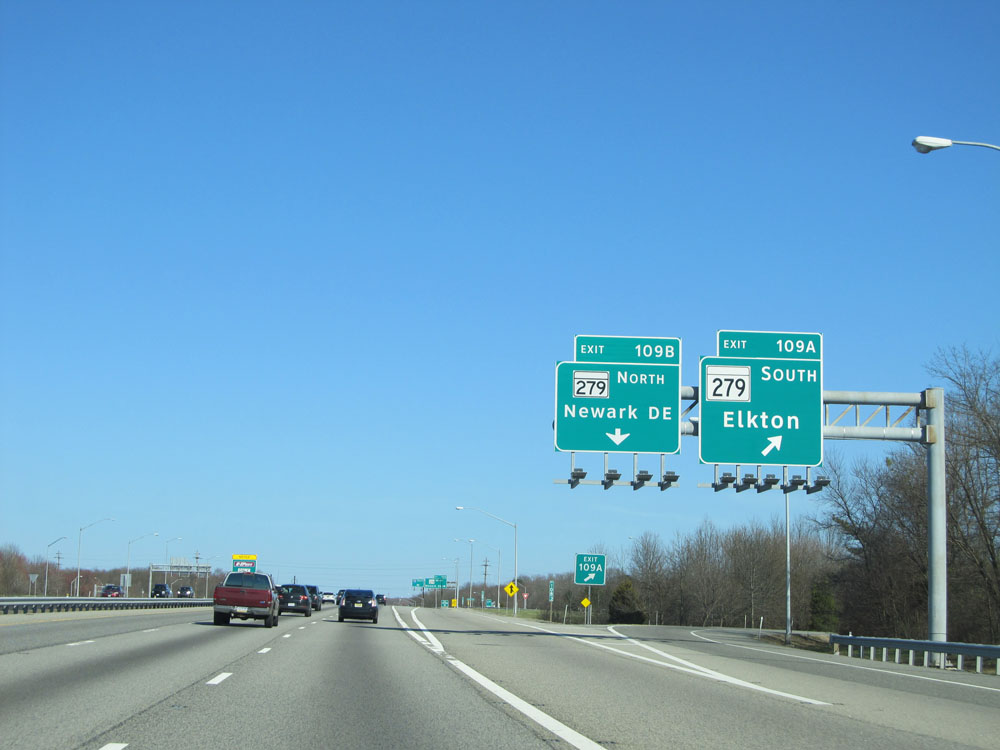 Interstate 95 North at Exit 109A: MD 279 South - Elkton (Photo taken 4/11/15).