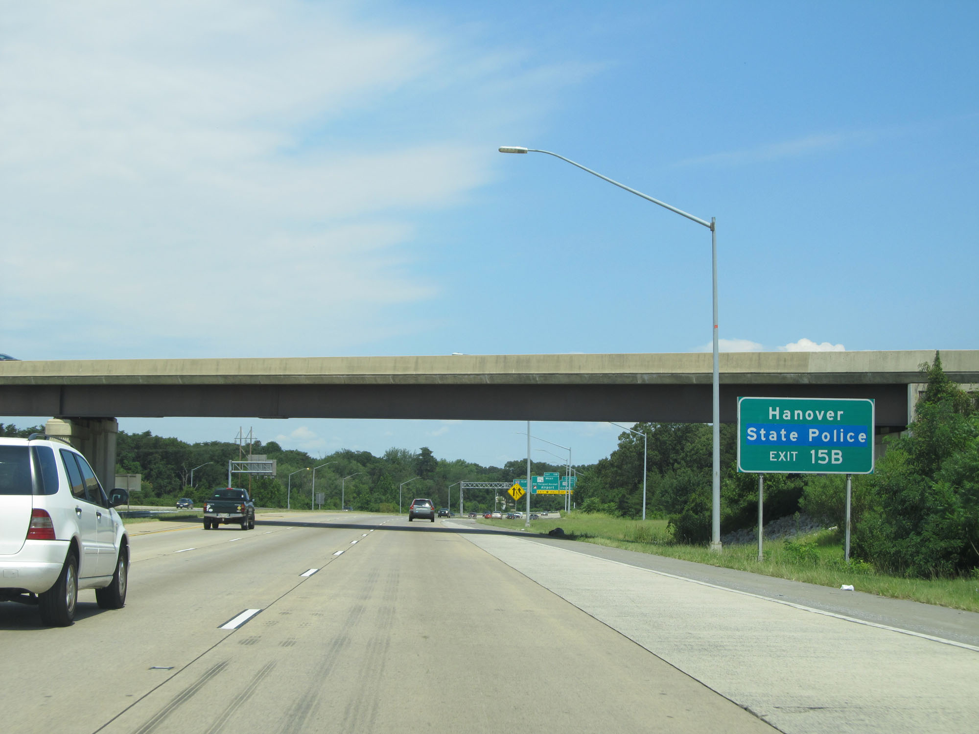 Take Exit 15B to Hanover and the State Police Barracks. (Photo taken 8/9/15). |