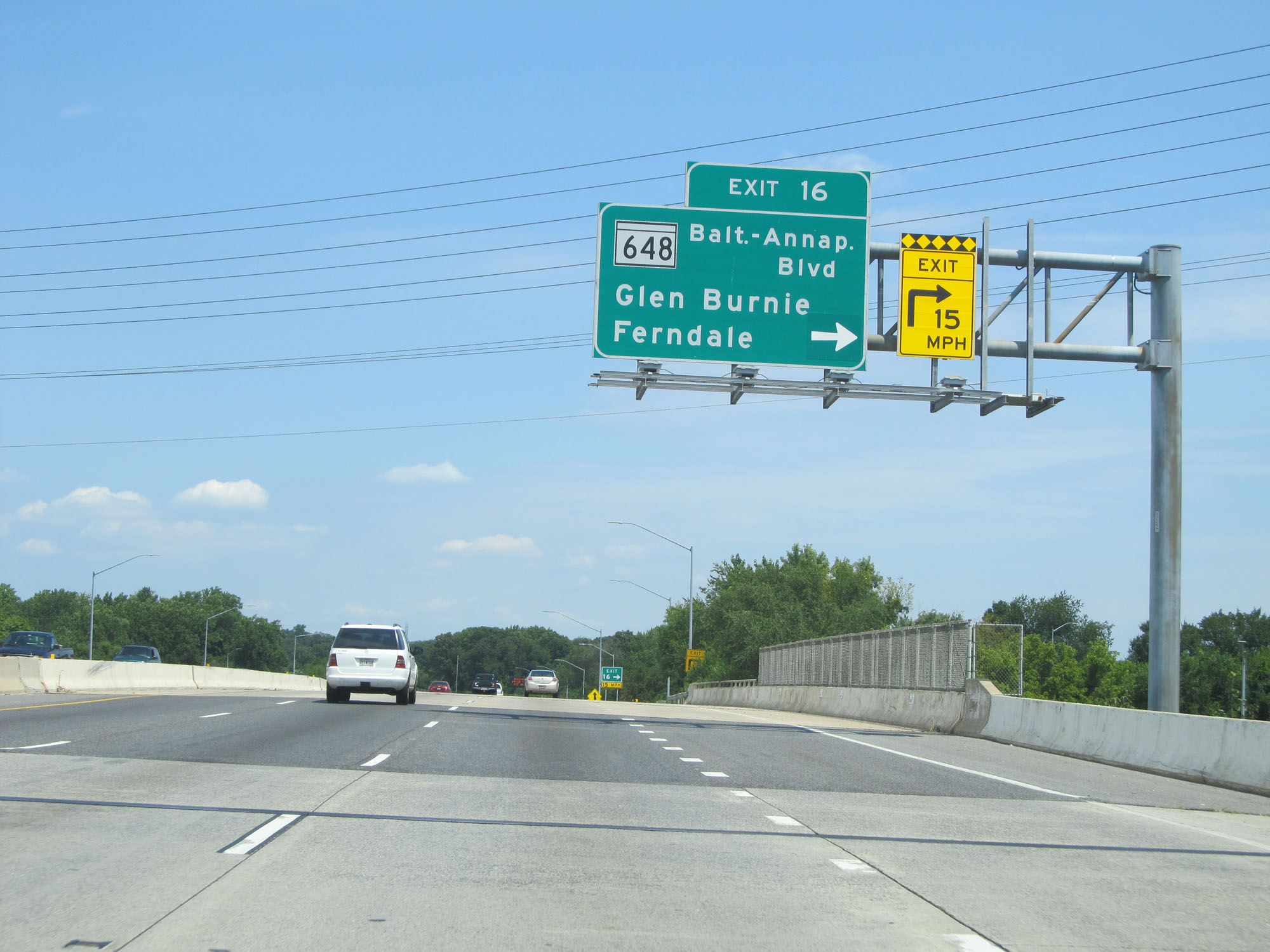 Interstate 97 North at Exit 16: MD 648 (Baltimore-Annapolis Blvd) - Glen Burnie / Ferndale (Photo taken 8/9/15). |