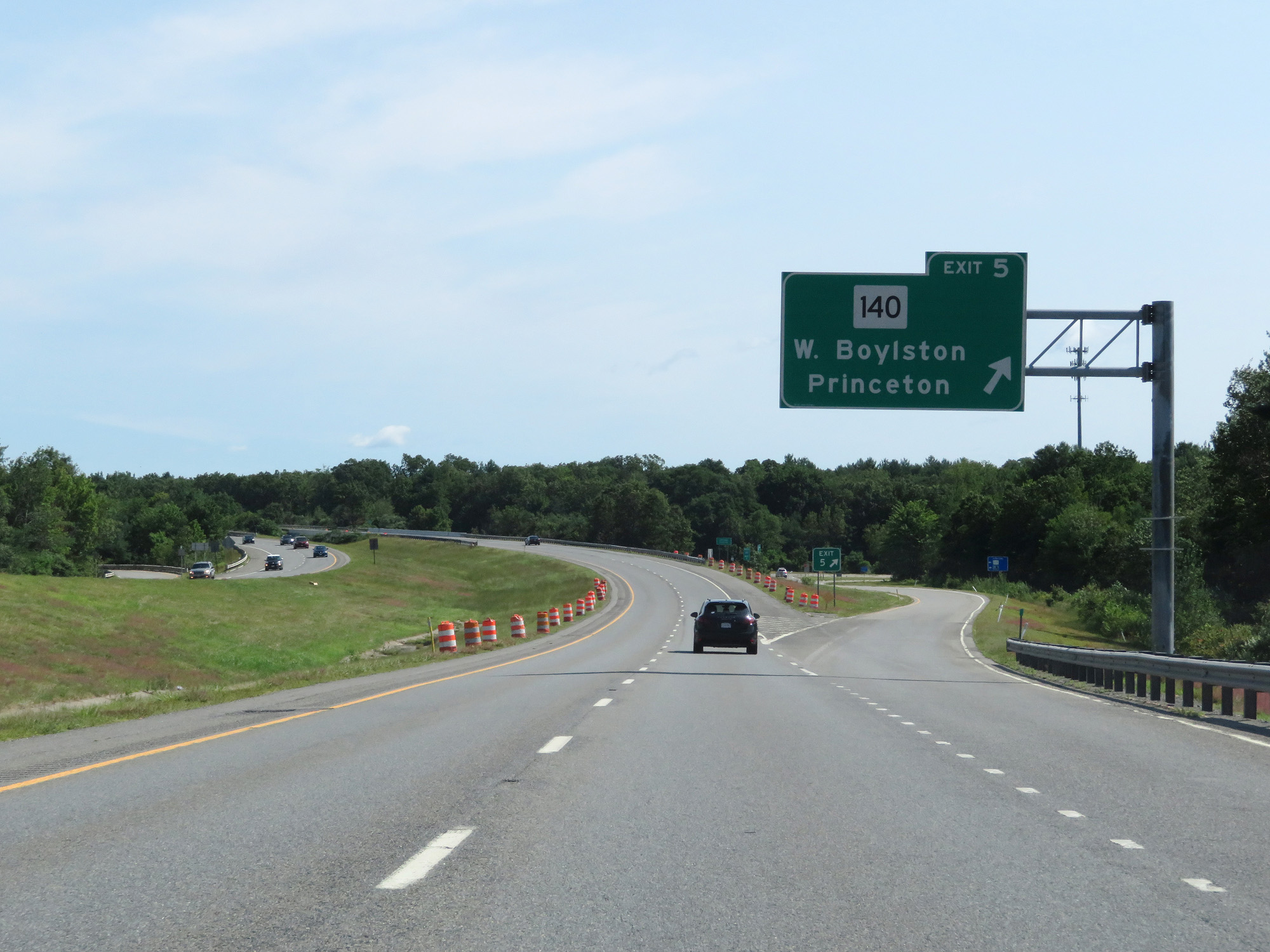 Interstate 190 North at Exit 5: MA 140 - West Boylston / Princeton (Photo taken 8/6/17). |