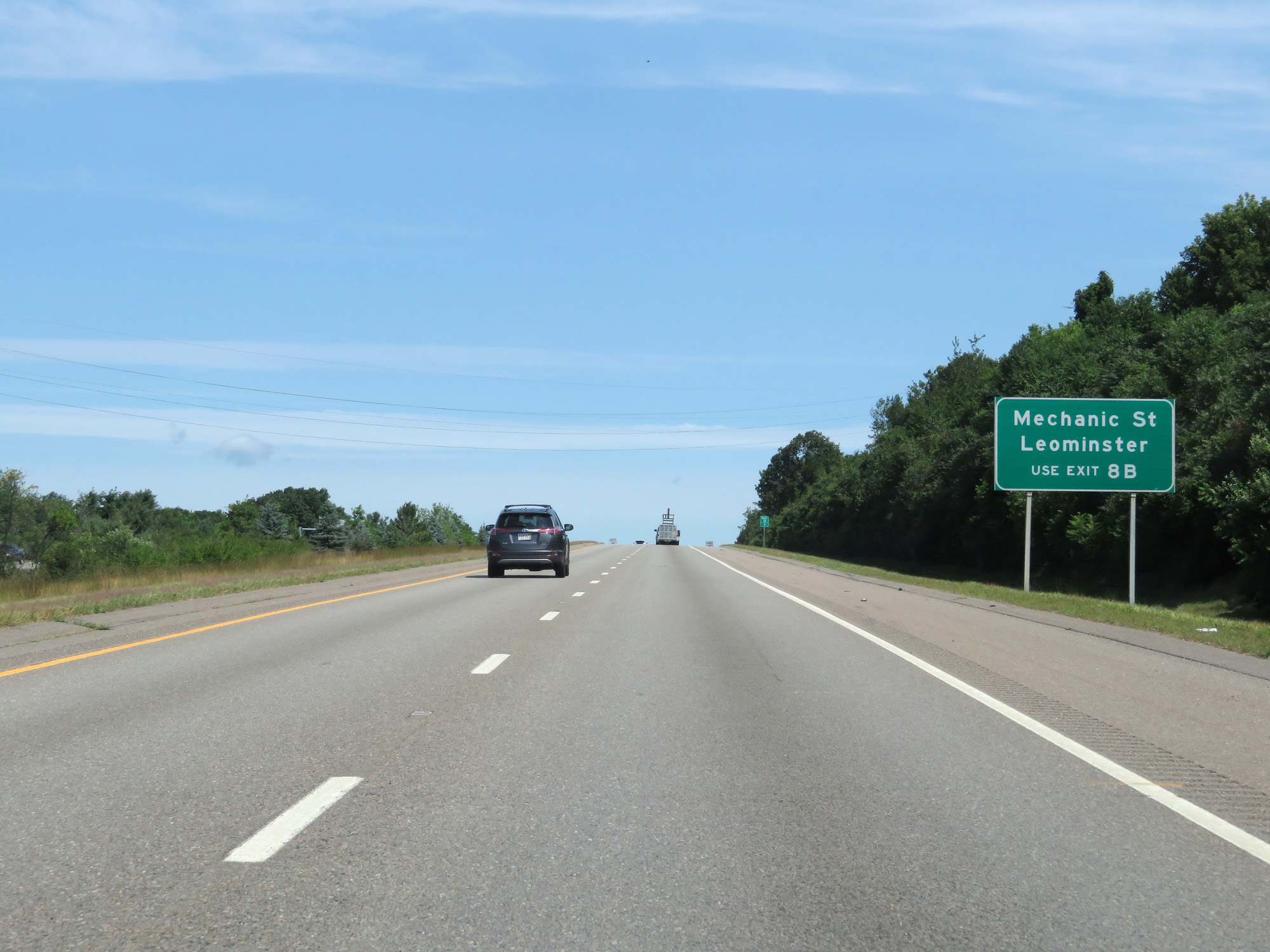 Take Exit 8B to Mechanic St and Leominster. (Photo taken 8/6/17). |