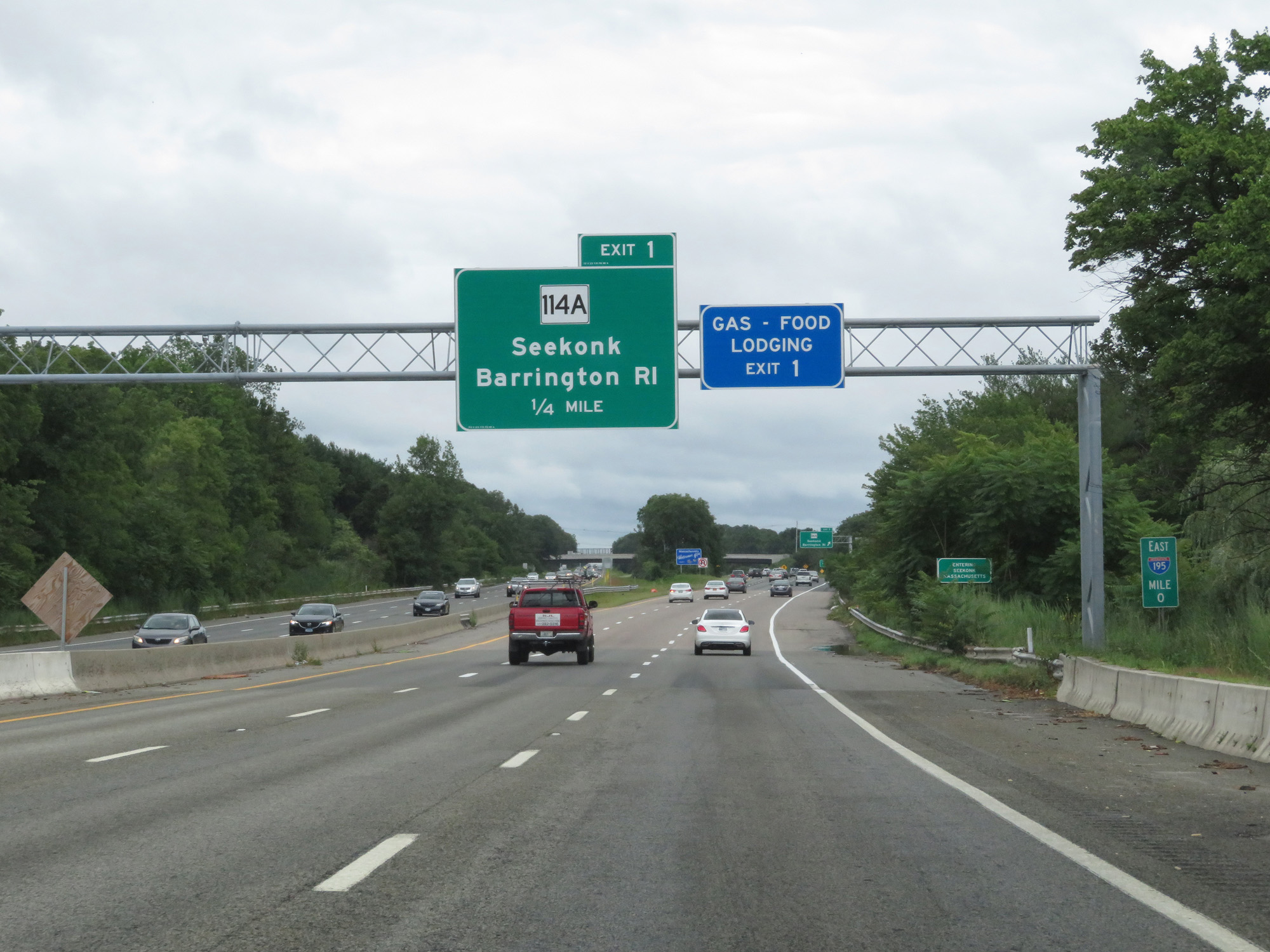 Interstate 195 East at Exit 1: MA 114A - Seekonk / Barrington, RI (Photo taken 8/5/17). |