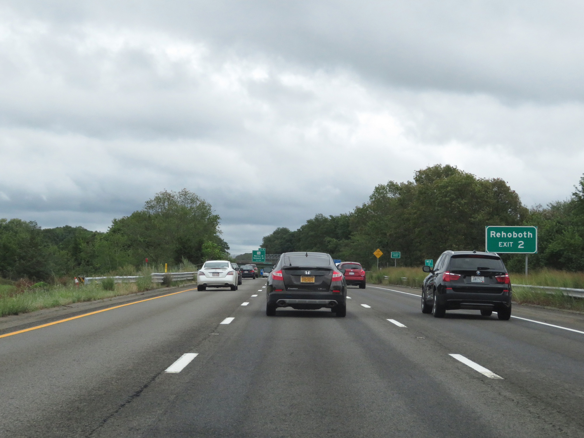 Interstate 195 East at Exit 2: MA 136 - Warren, RI / Newport, RI (Photo taken 8/5/17). |