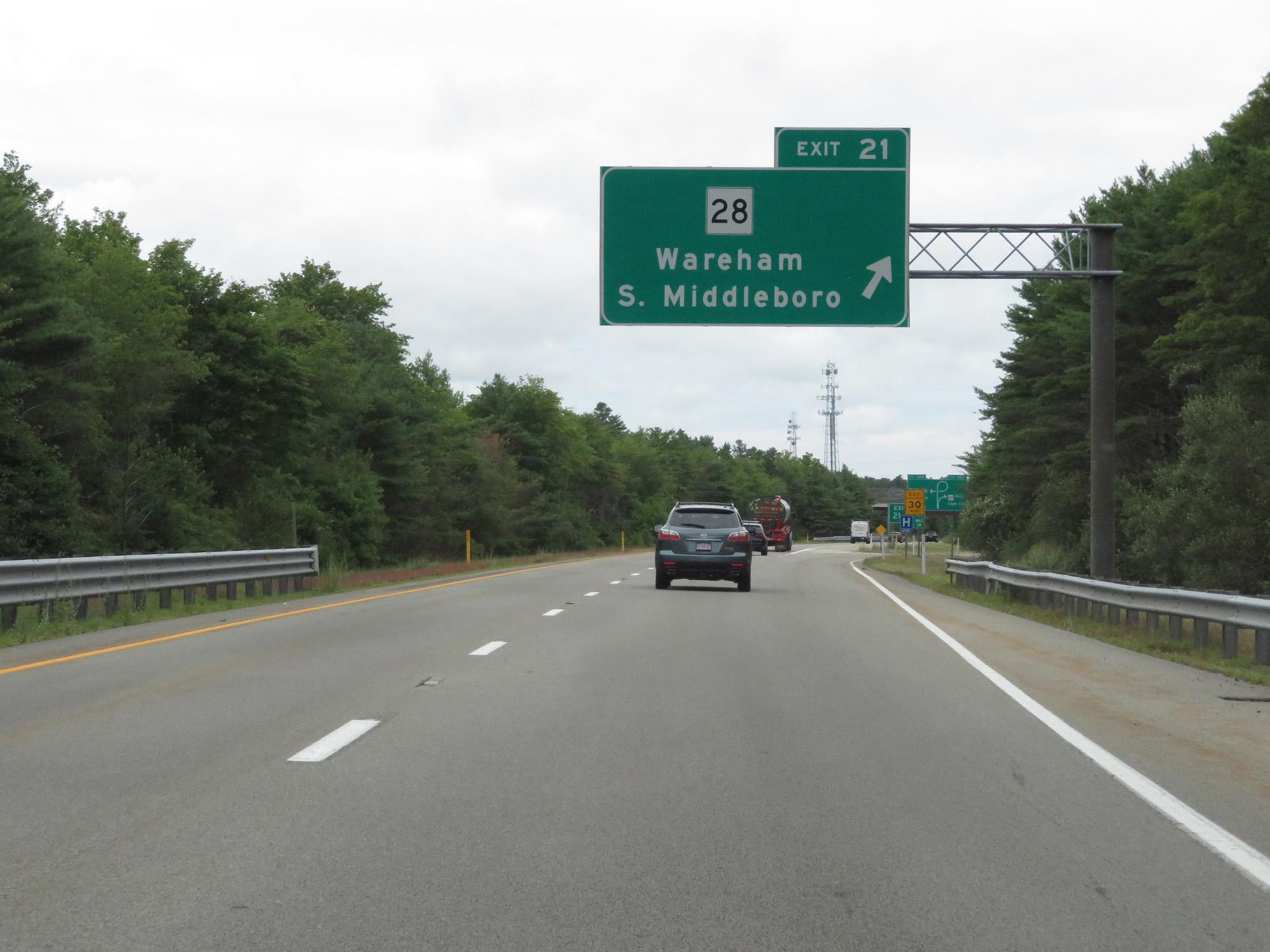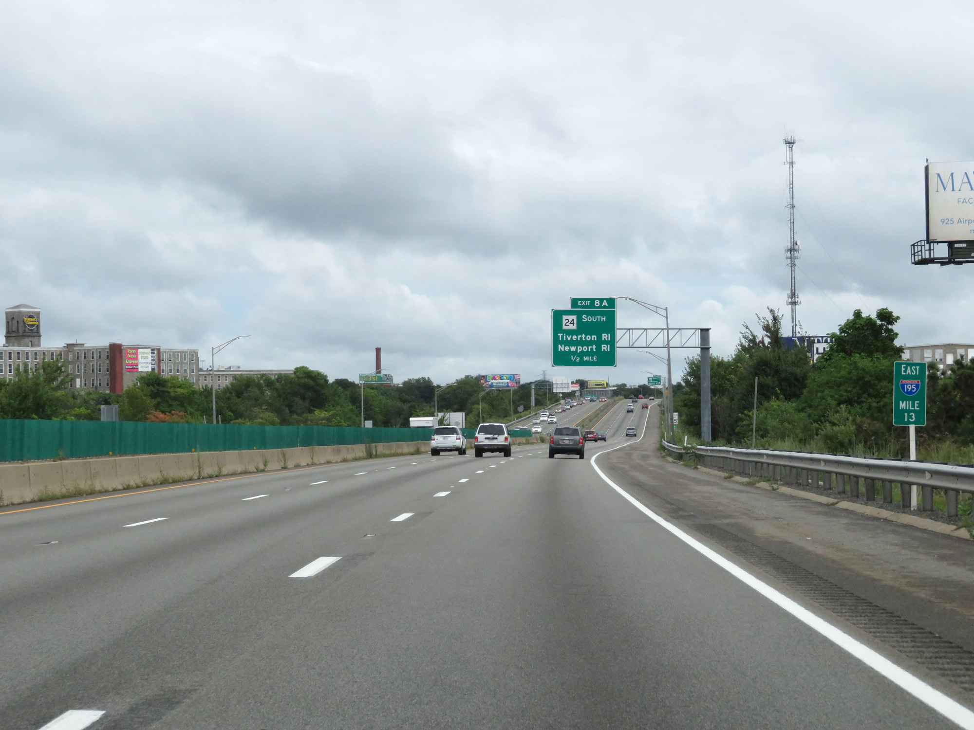 Interstate 195 East at Exit 8A: MA 24 South - Tiverton, RI / Newport, RI (Photo taken 8/5/17). |