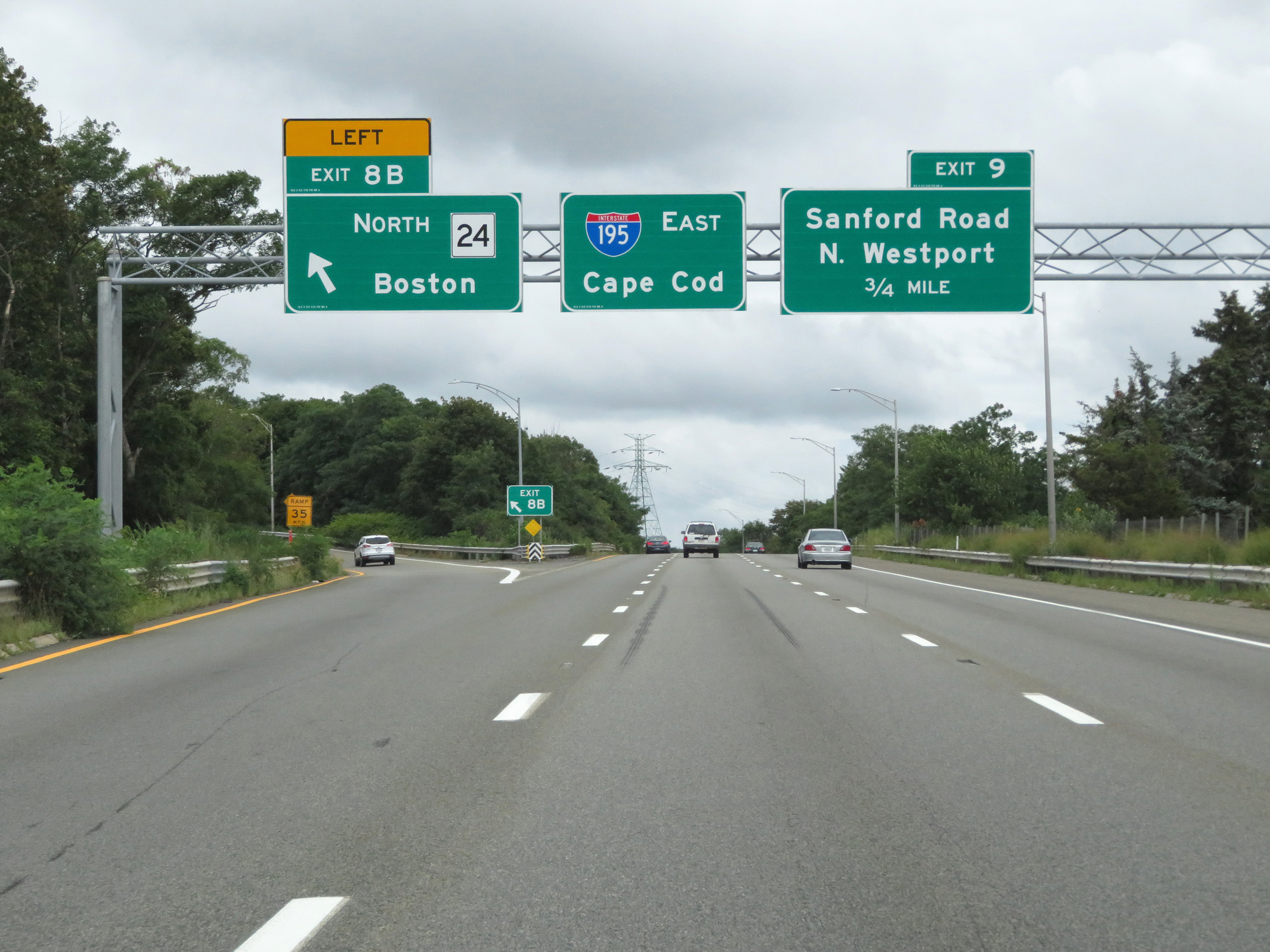 Interstate 195 East at Exit 8B: MA 24 North - Boston (Photo taken 8/5/17). |