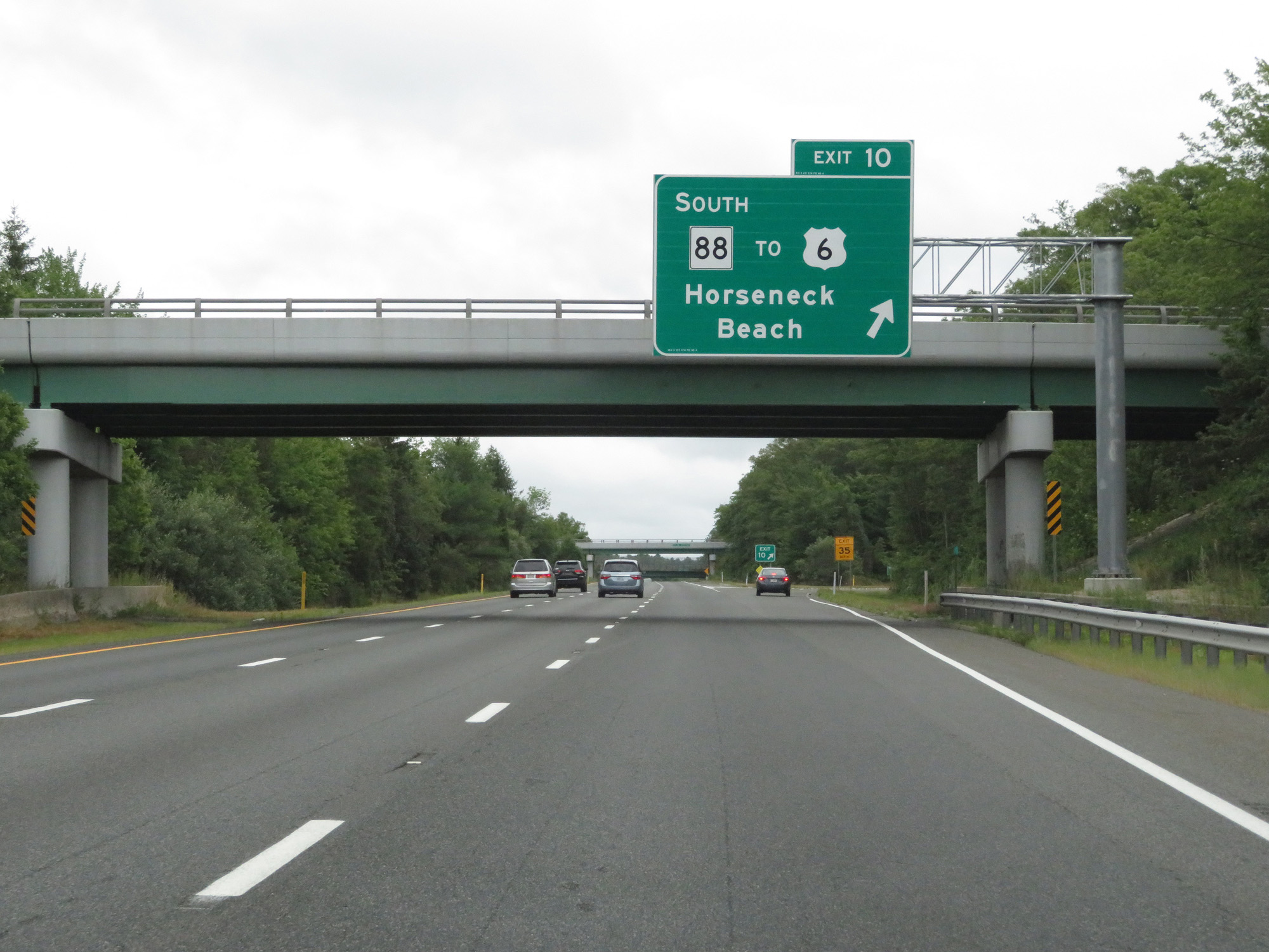 Interstate 195 East at Exit 10: MA 88 South / To US 6 - Horseneck Beach (Photo taken 8/5/17). |