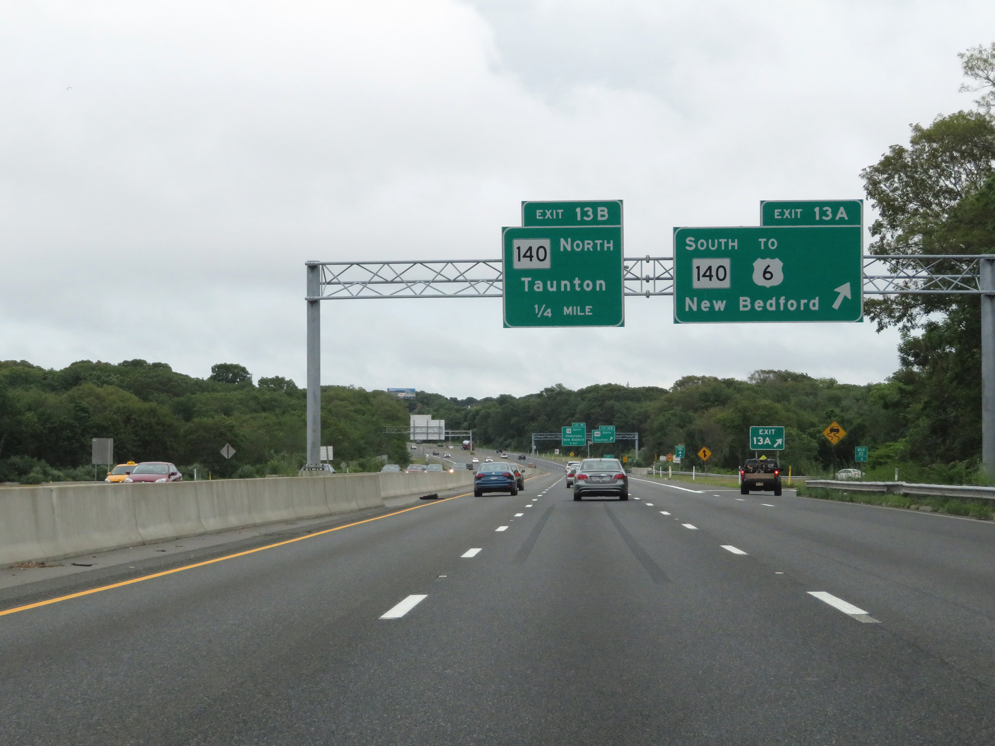 Interstate 195 East at Exit 13B: MA 140 North - Taunton (Photo taken 8/5/17). |