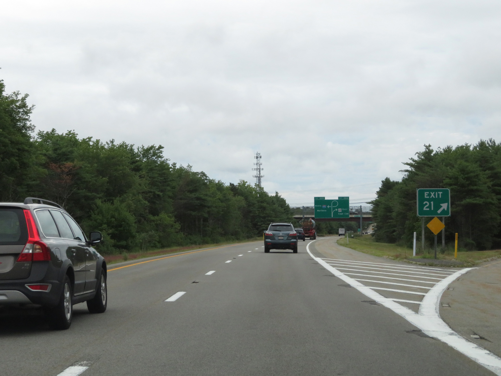 Approachinig the New Bedford area, the speed limit decreases to 55 mph. (Photo taken 8/5/17). |