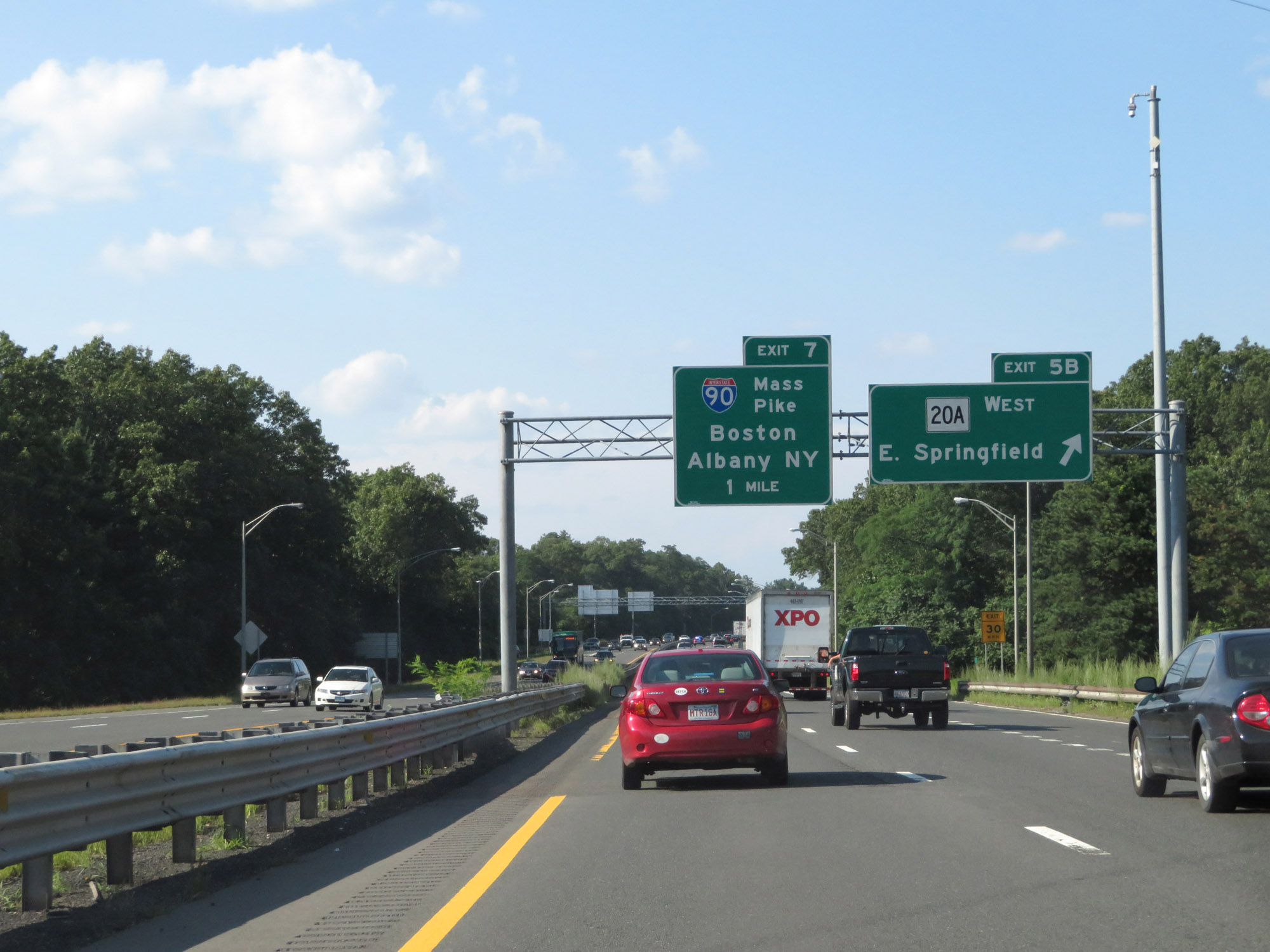 Interstate 291 East at Exit 7: Interstate 90 (Mass Pike) - Boston / Albany (Photo taken 8/9/17). |