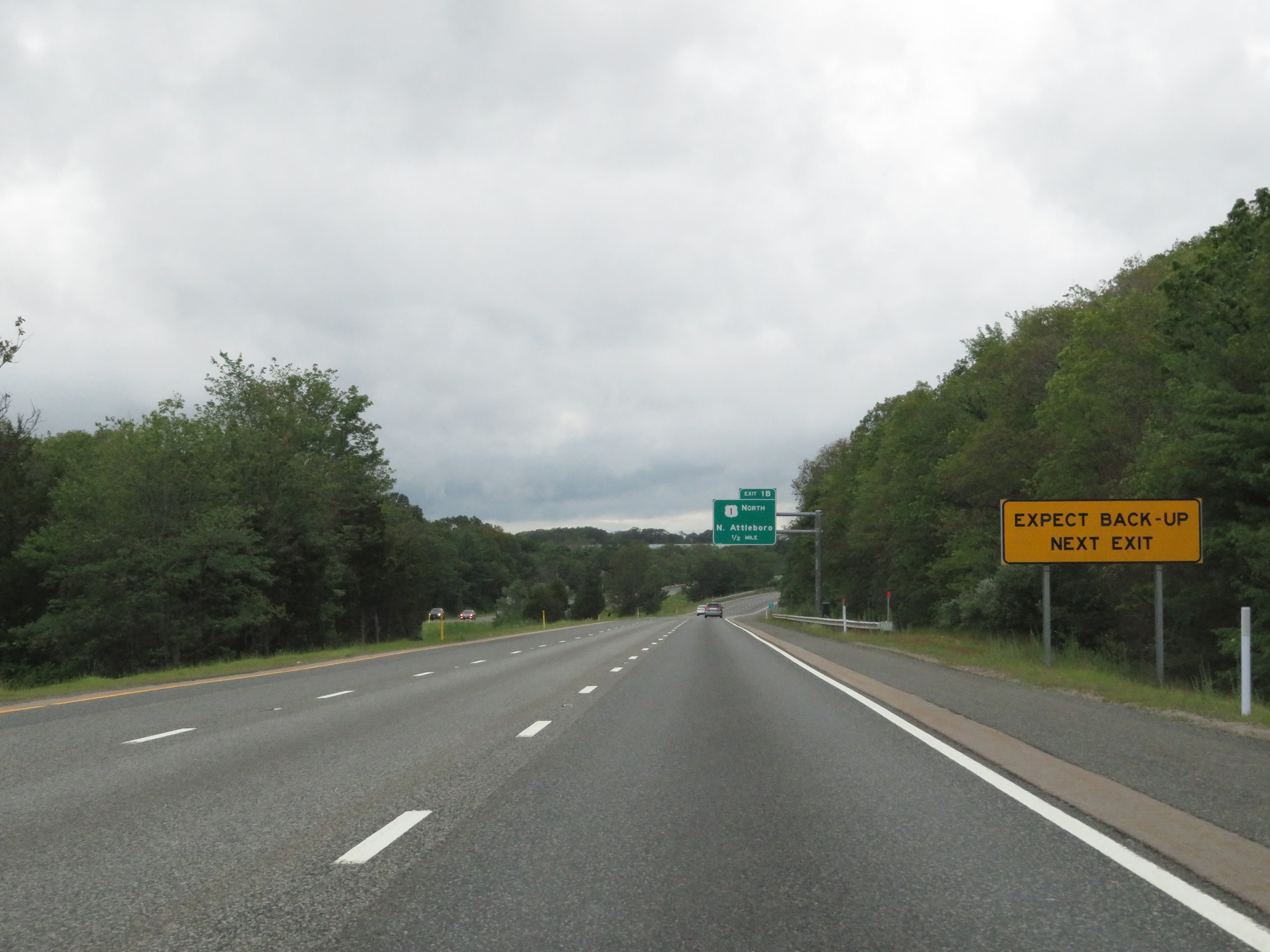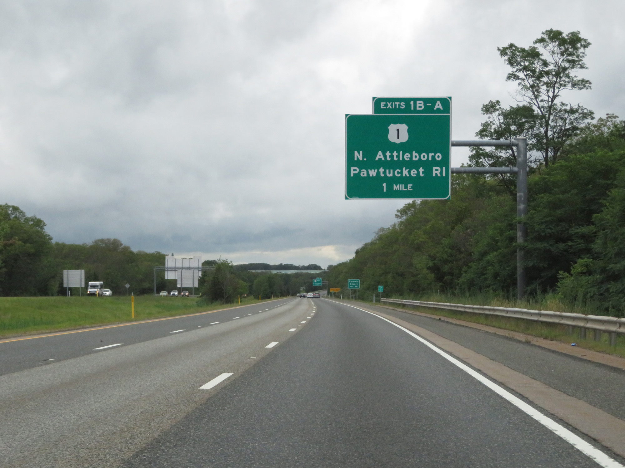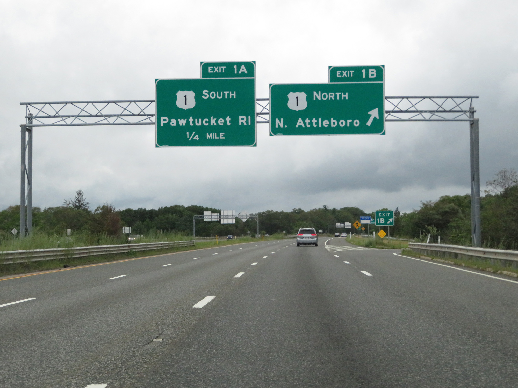 Interstate 295 South at Exit 1B: US 1 North - North Attleboro (Photo taken 8/5/17). |