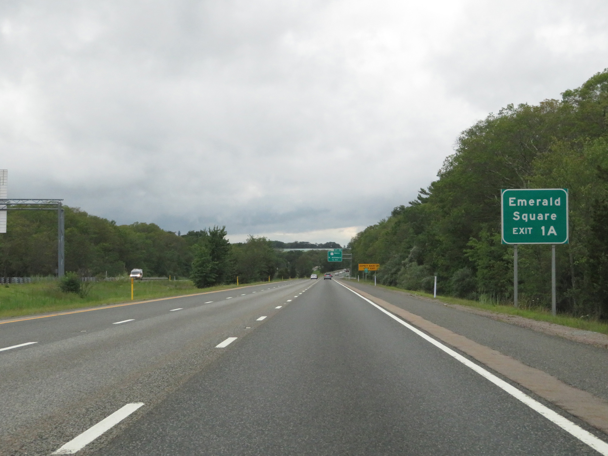 Take Exit 1A to Emerald Square. (Photo taken 8/5/17). |