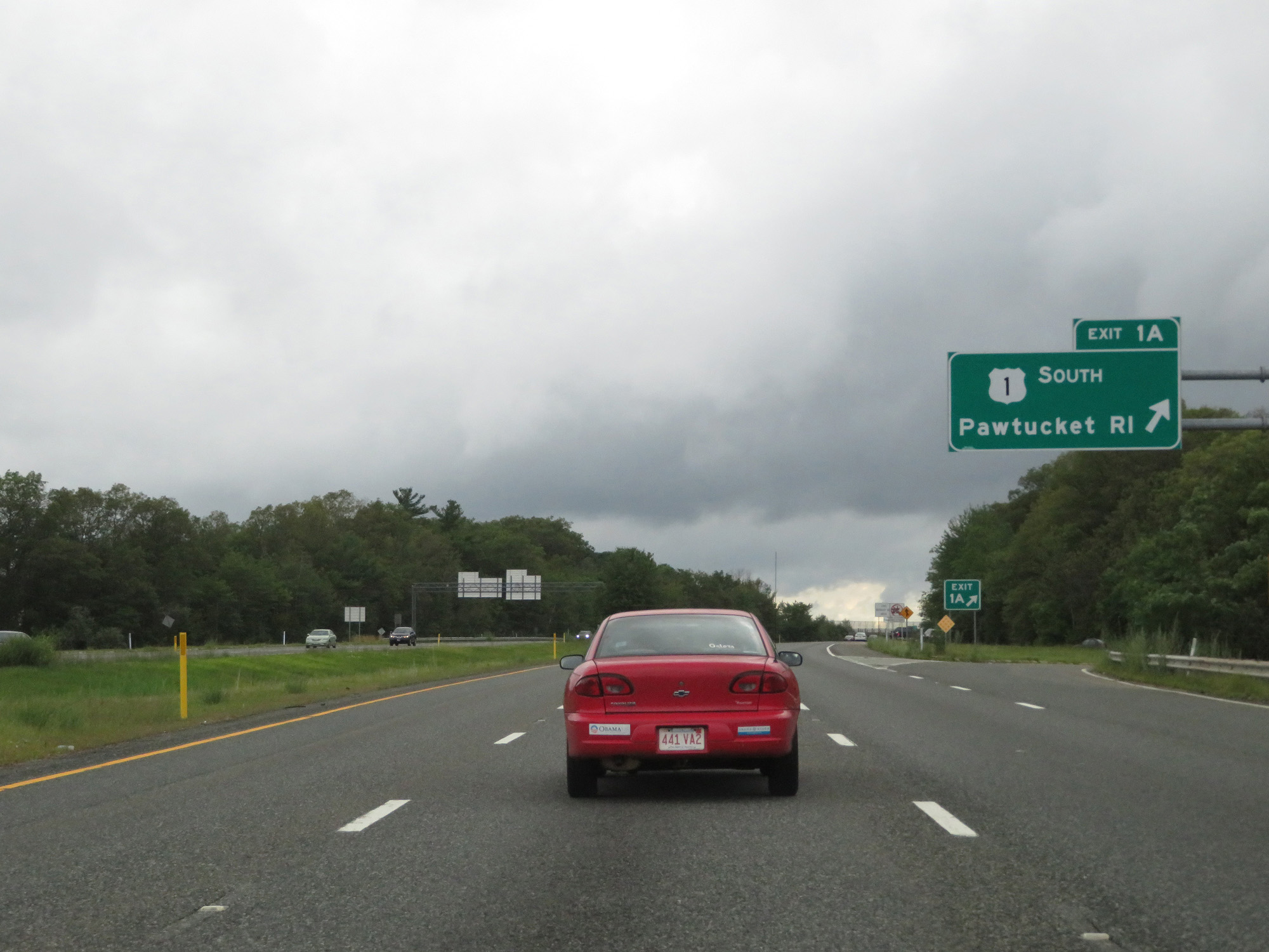 Interstate 295 South at Exit 1A: US 1 South - Pawtucket, RI (Photo taken 8/5/17). |