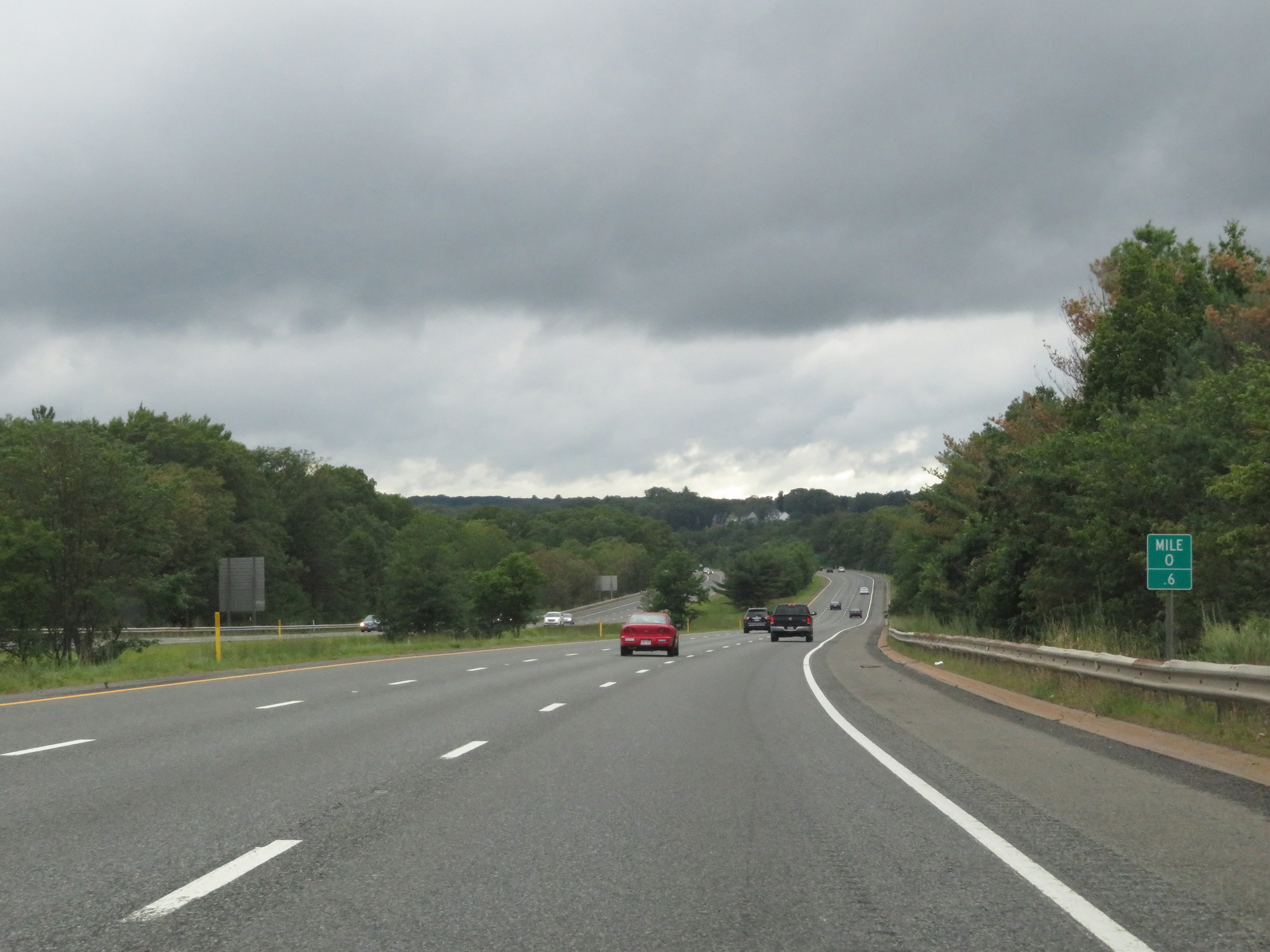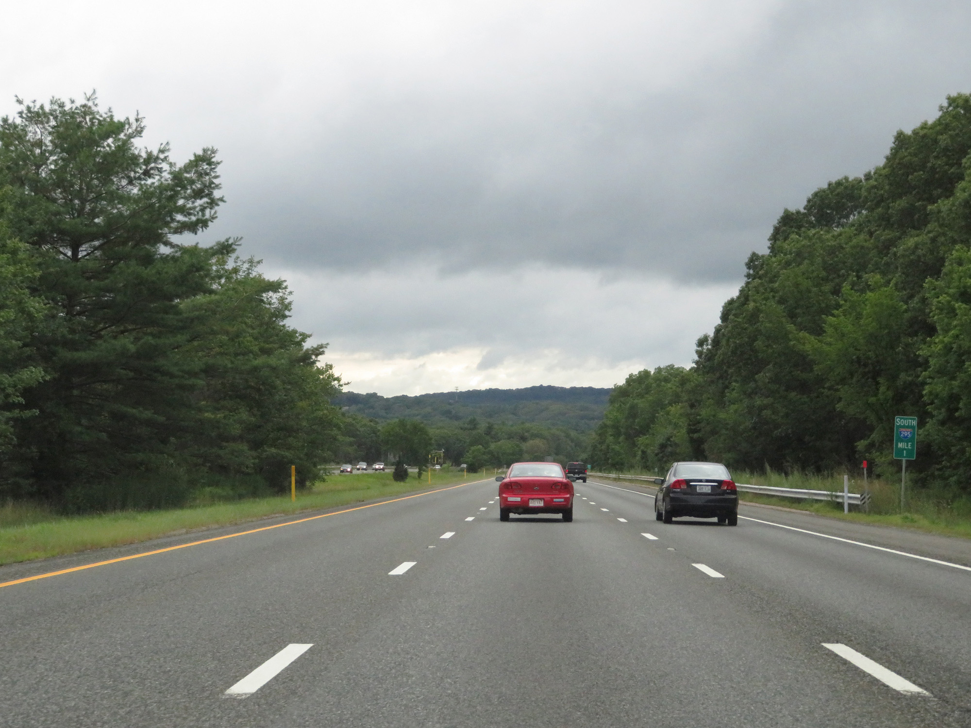 Interstate 295 South at mile marker 0, which marks the Rhode Island state line. (Photo taken 8/5/17). |