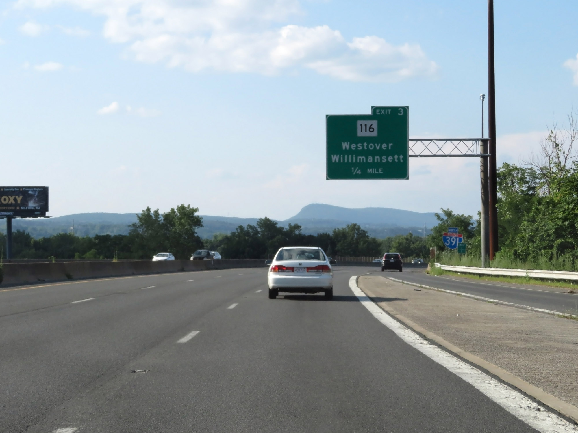 Interstate 391 North at Exit 3: MA 116 - Westover / Willimansett (Photo taken 8/9/17). |