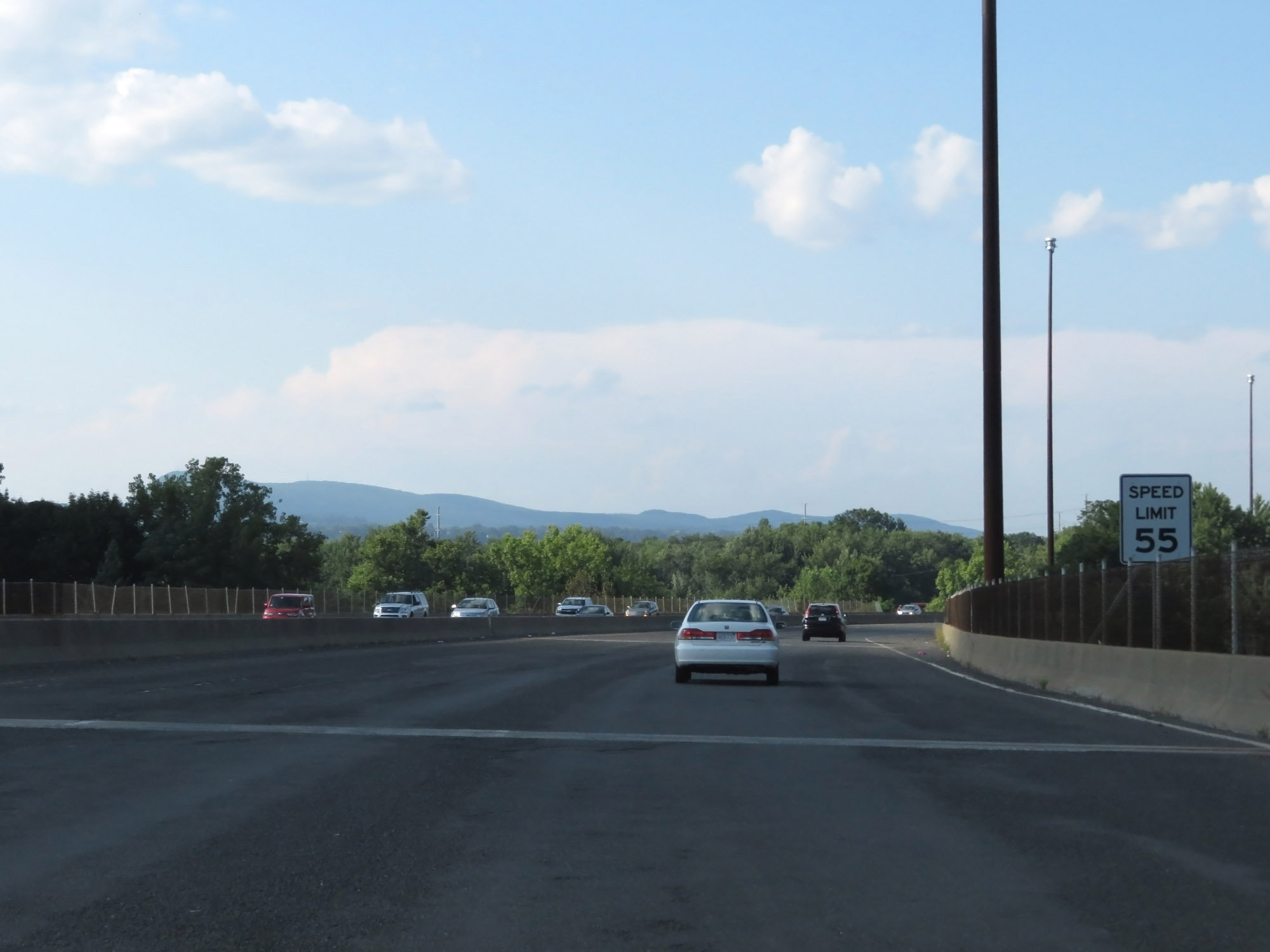 The speed limit on Interstate 391 North starts out at 55 mph. (Photo taken 8/9/17). |