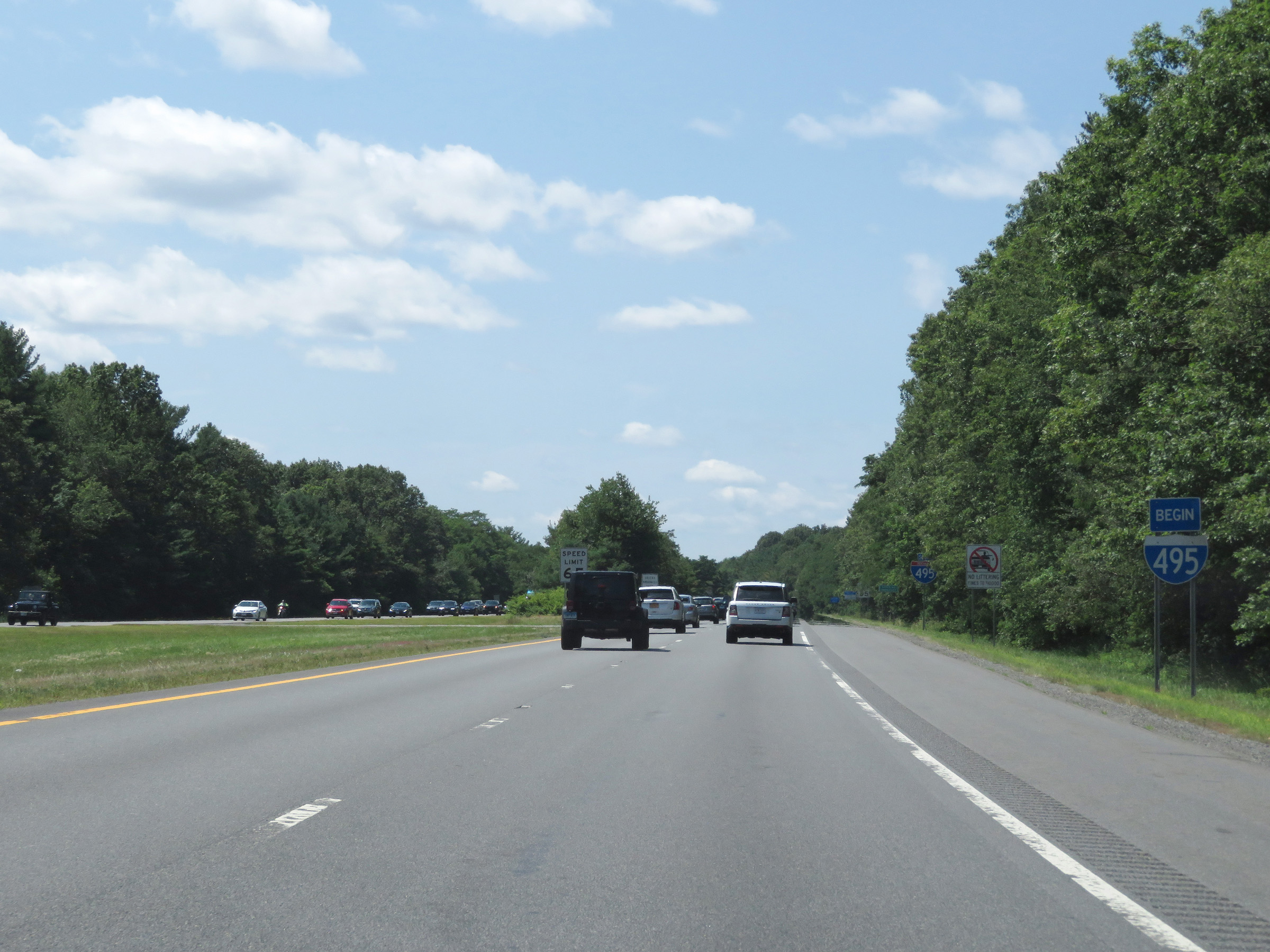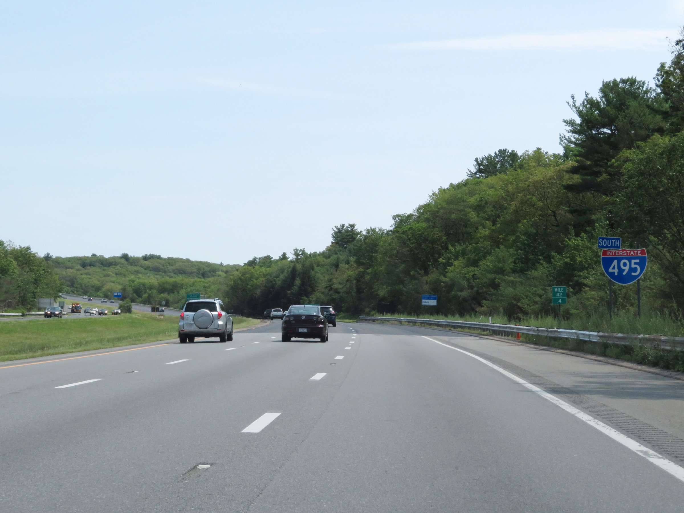 View on Interstate 495 South as it enters Middlesex County. (Photo taken 8/6/17). |