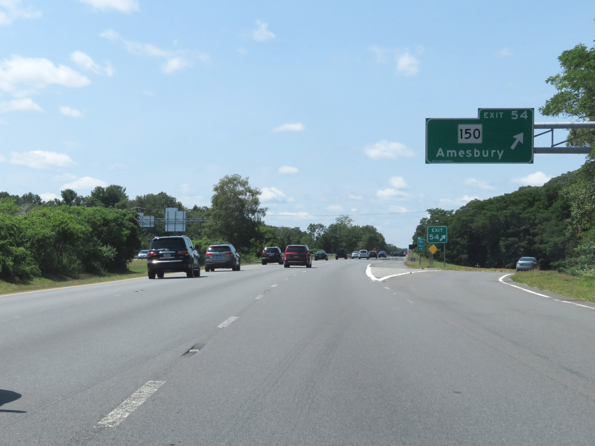 Interstate 495 South at Exit 54: MA 150 - Amesbury (Photo taken 8/6/17). |