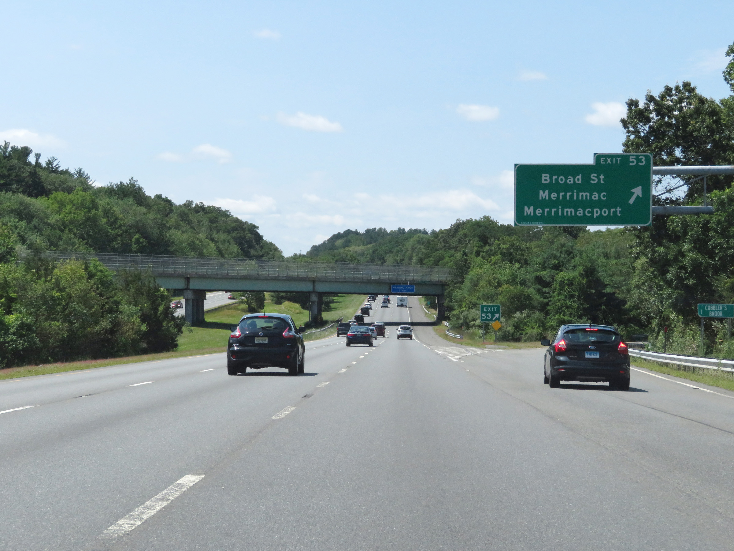 Interstate 495 South at Exit 53: Broad St / Merrimac / Merrimacport (Photo taken 8/6/17). |