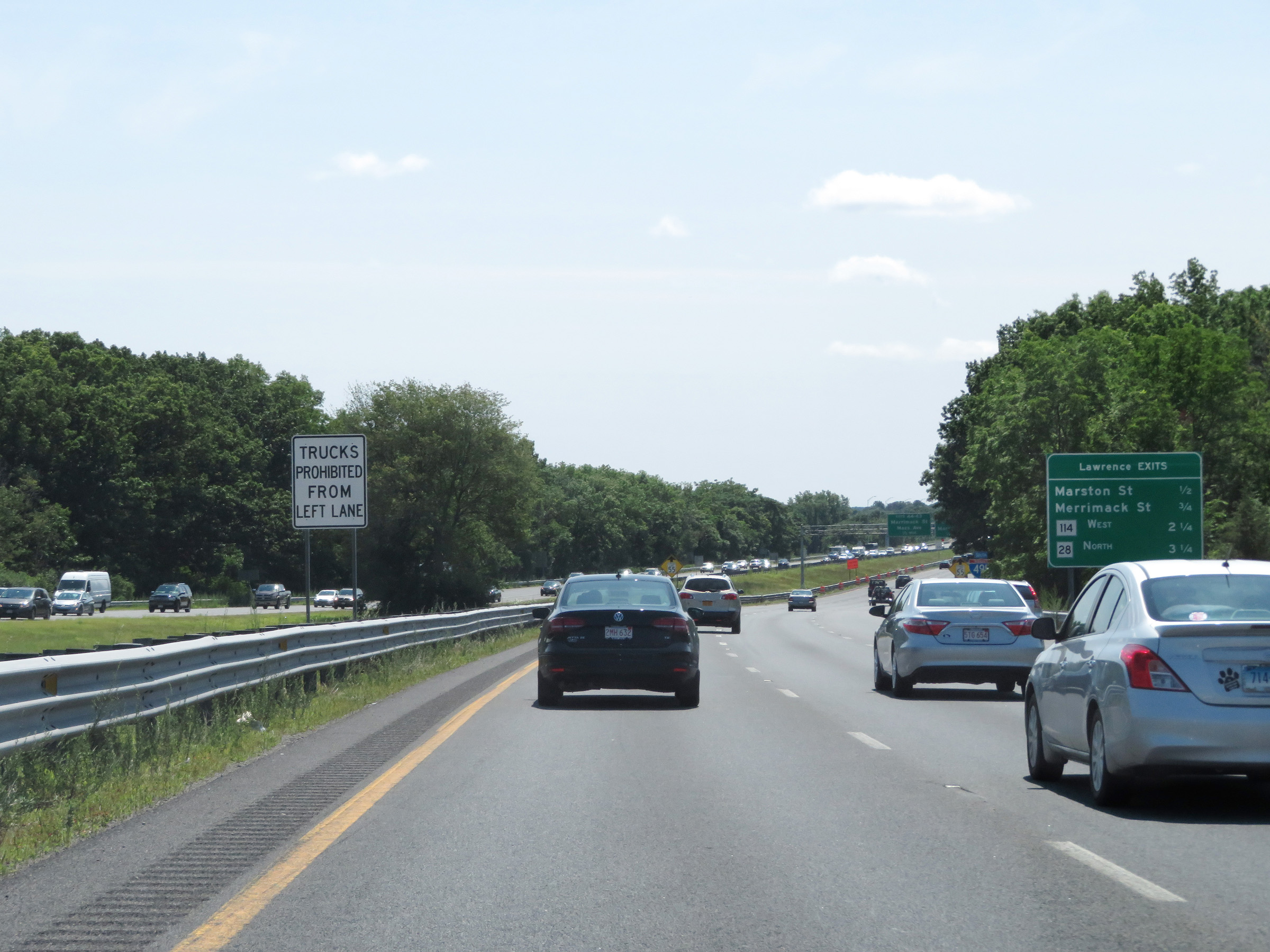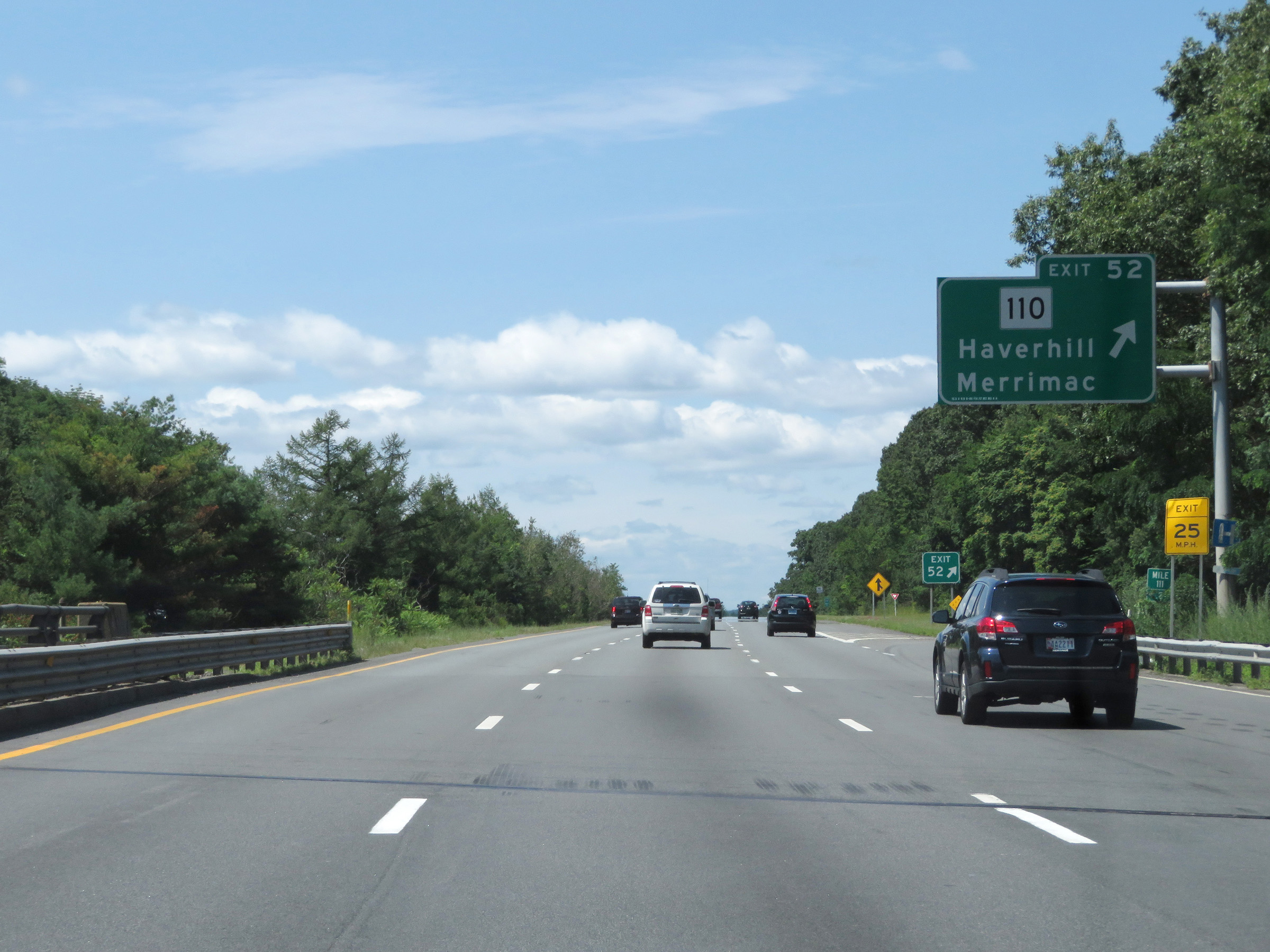 Interstate 495 South at Exit 52: MA 110 - Haverhill / Merrimac (Photo taken 8/6/17). |