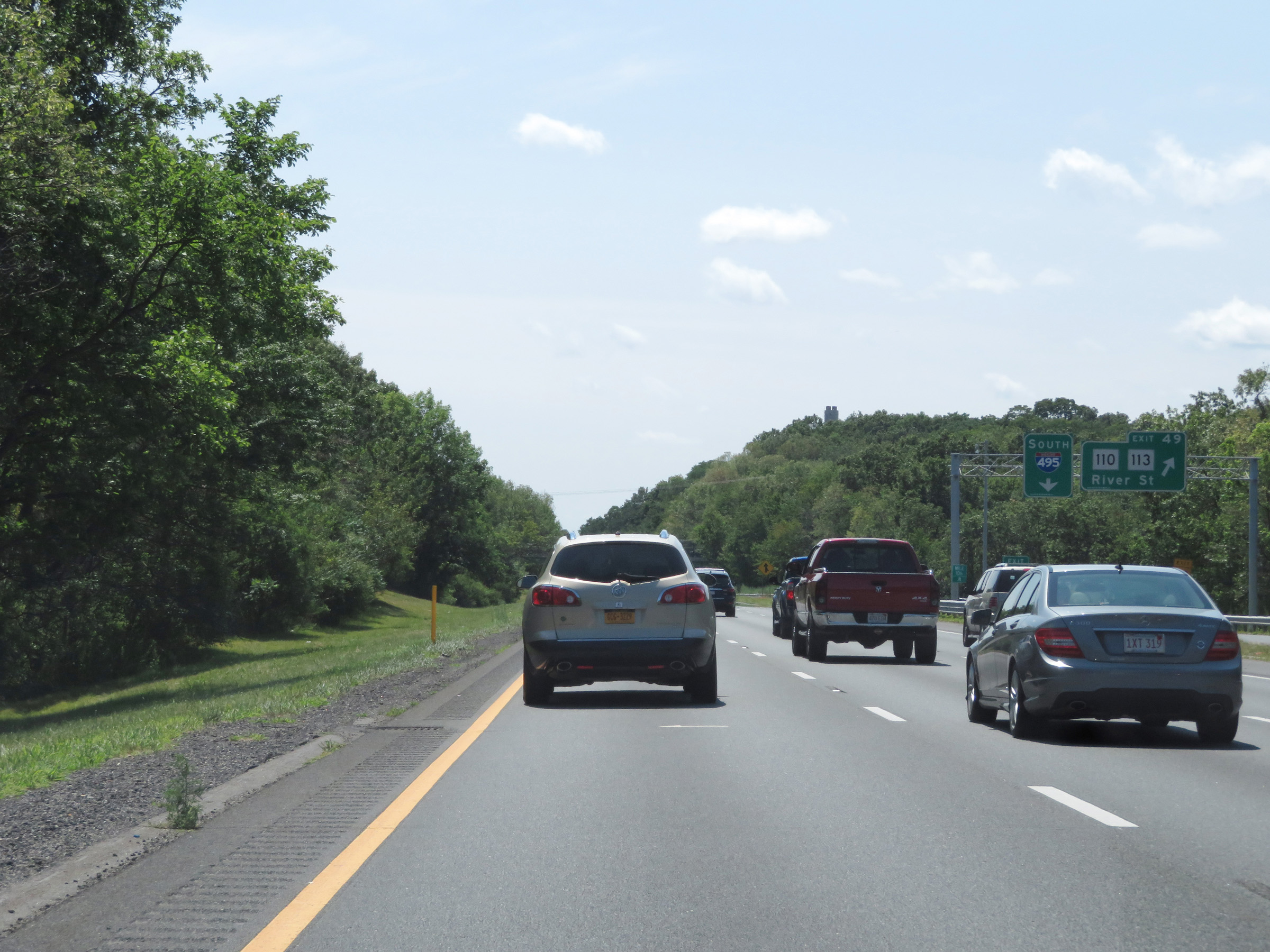 Interstate 495 South at Exit 49: MA 110 / MA 113 - River St (Photo taken 8/6/17). |