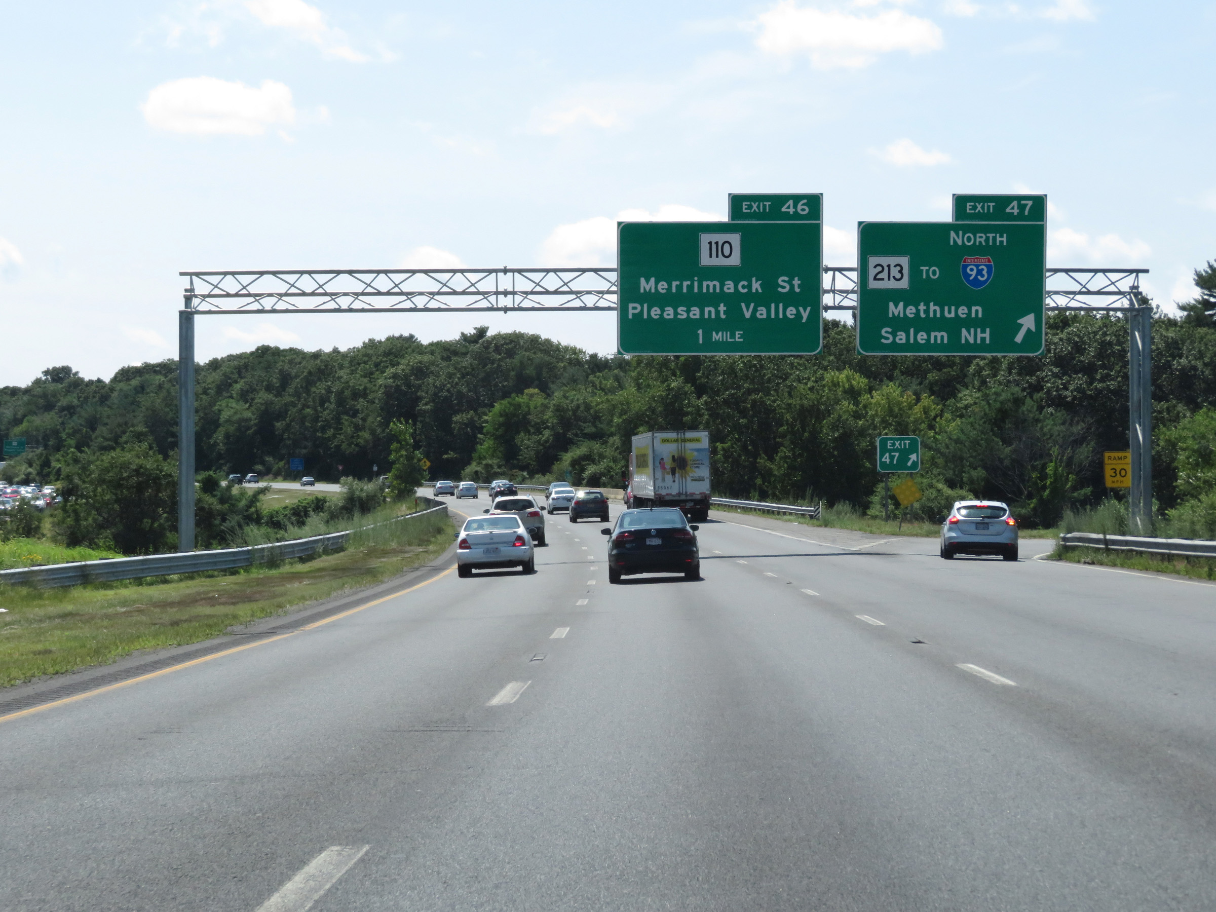 Interstate 495 South at Exit 46: MA 110 - Merrimack St / Pleasant Valley (Photo taken 8/6/17). |