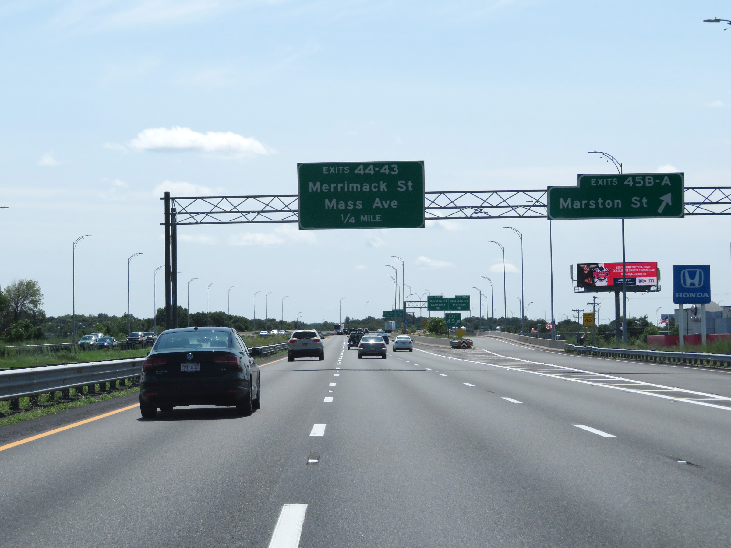 Interstate 495 South at Exits 45B-A: Marston St (Photo taken 8/6/17). |