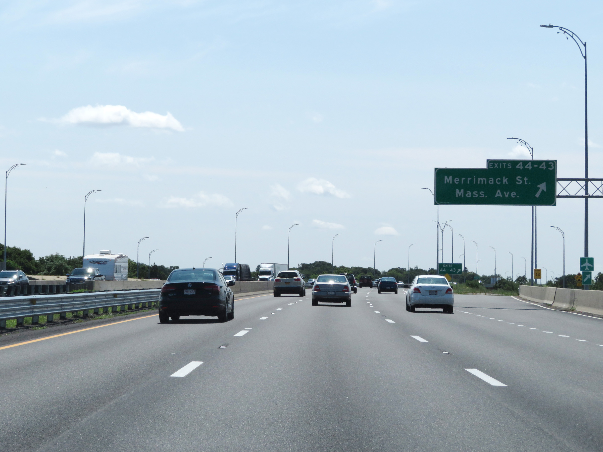 Interstate 495 South at Exits 44-43: Merrimack St / Massachusetts Ave (Photo taken 8/6/17). |