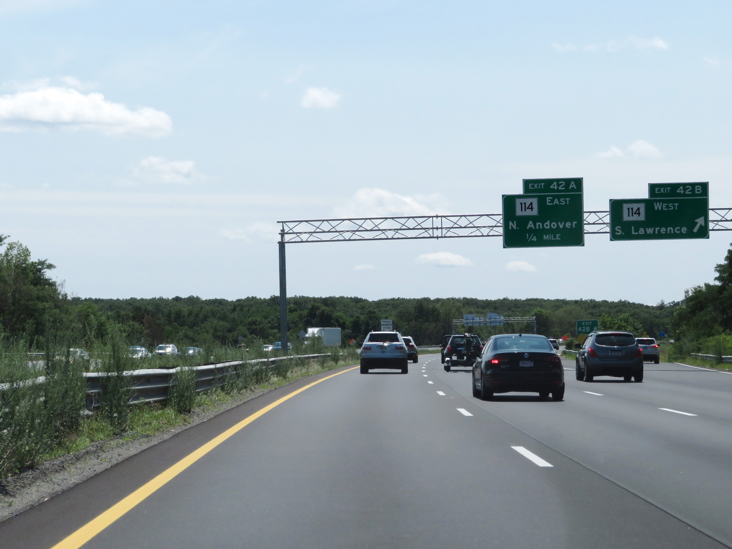 Interstate 495 South at Exit 42B: MA 114 West - South Lawrence (Photo taken 8/6/17). |