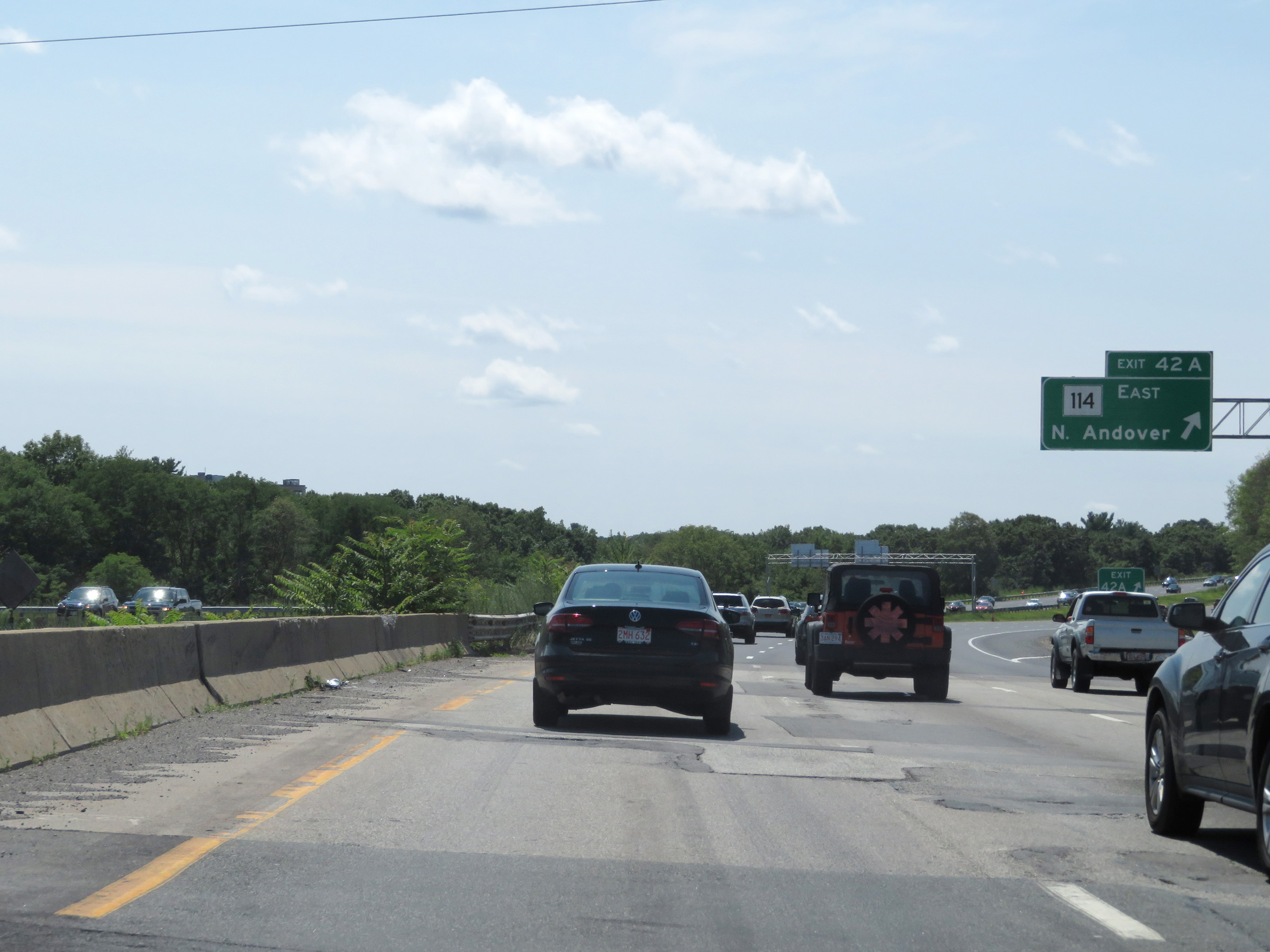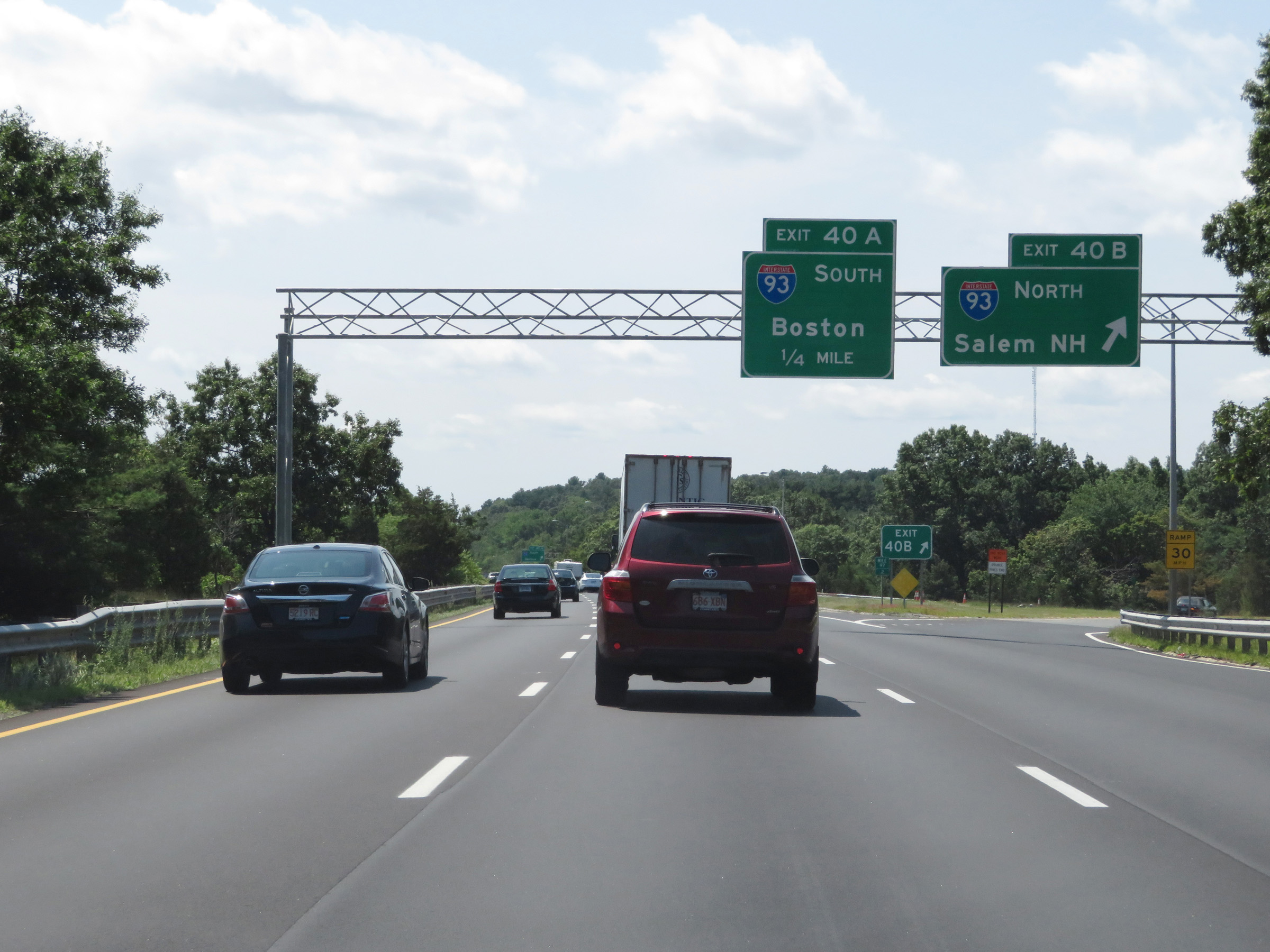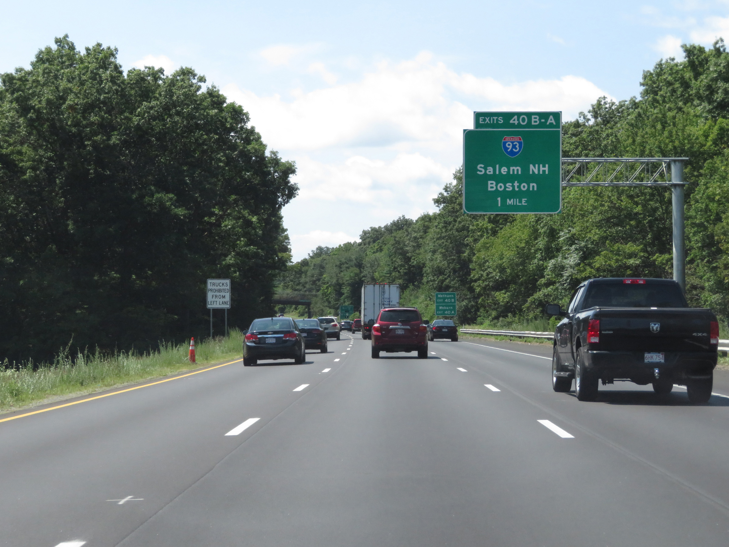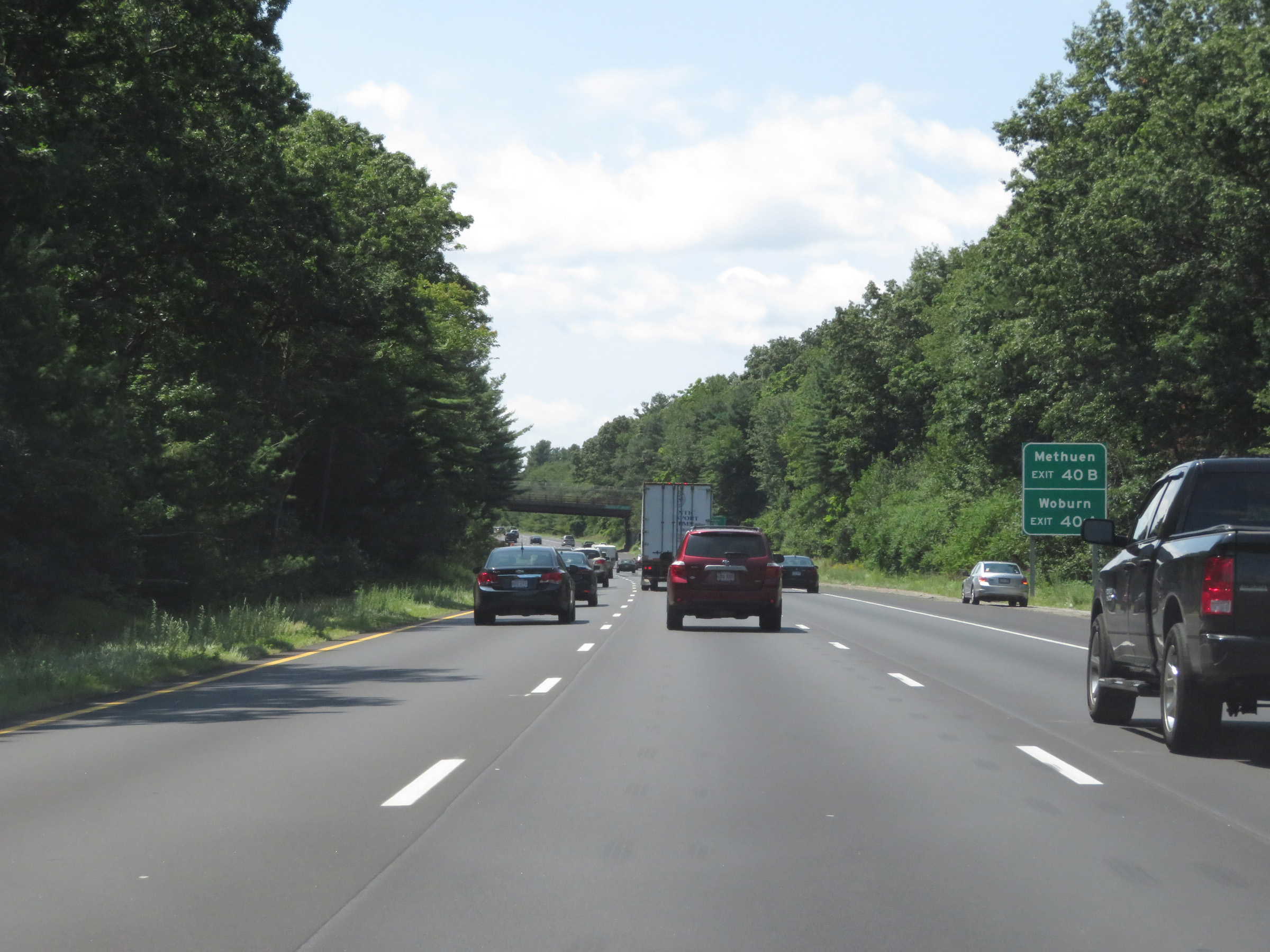 Take Exit 40B (Interstate 93 North) to Methuen. Take Exit 40A (Interstate 93 South) to Woburn. (Photo taken 8/6/17). |