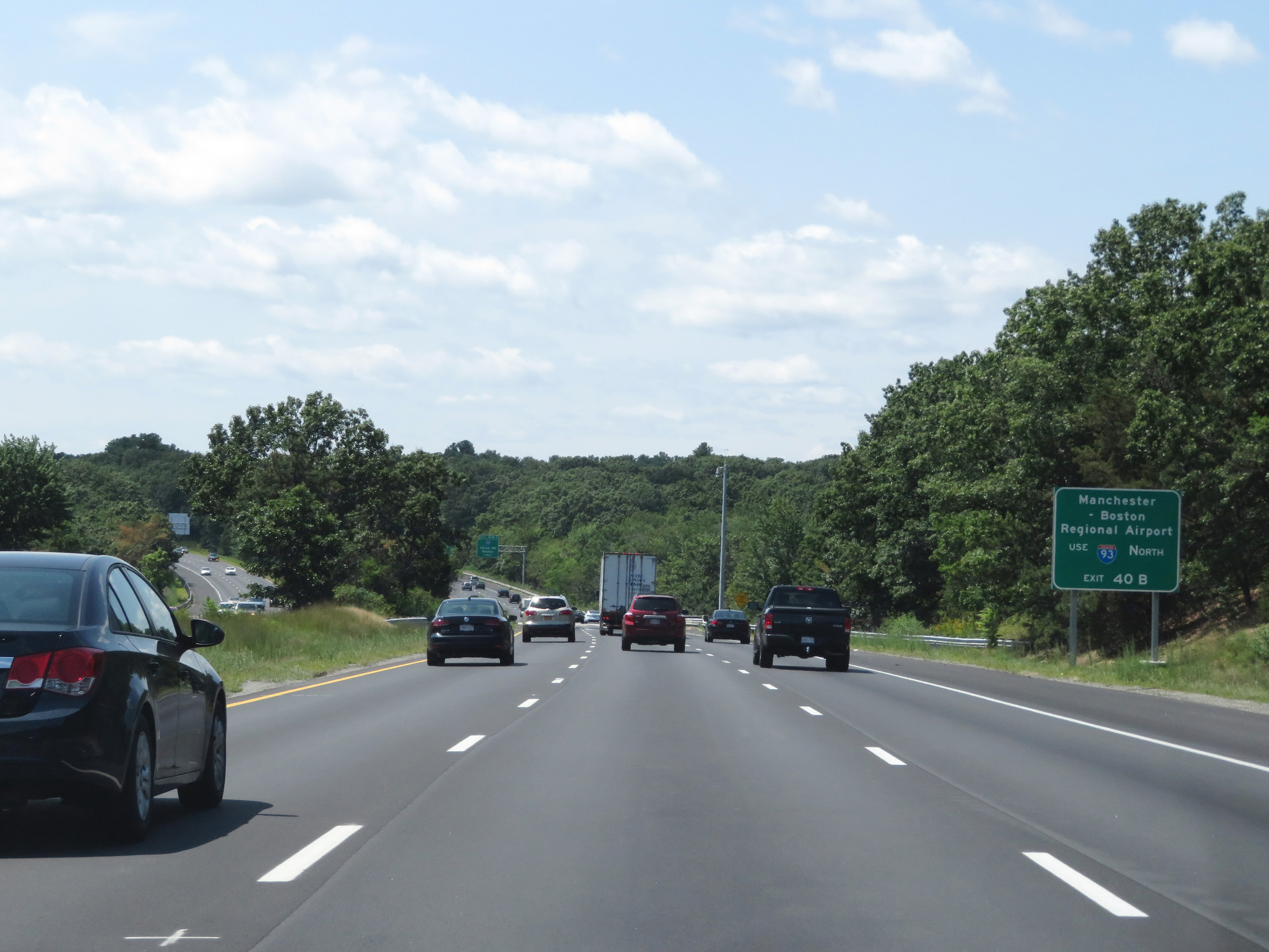 Take Exit 40B (Interstate 93 North) to Manchester-Boston Regional Airport. (Photo taken 8/6/17). |