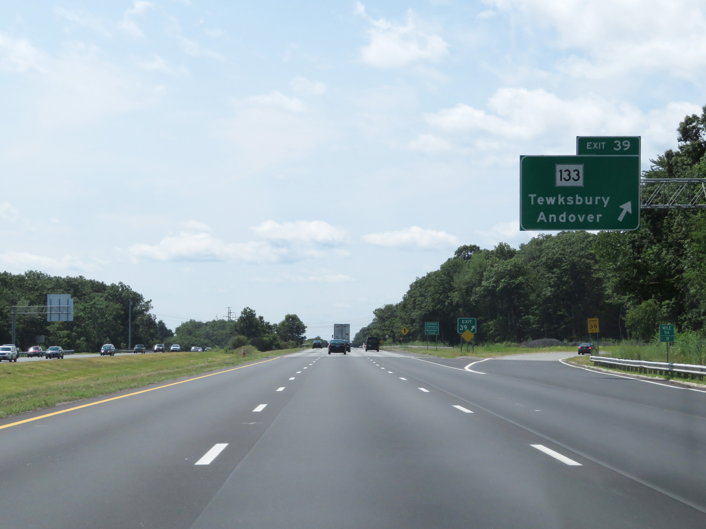 Interstate 495 South at Exit 39: MA 133 - Tewksbury / Andover (Photo taken 8/6/17). |